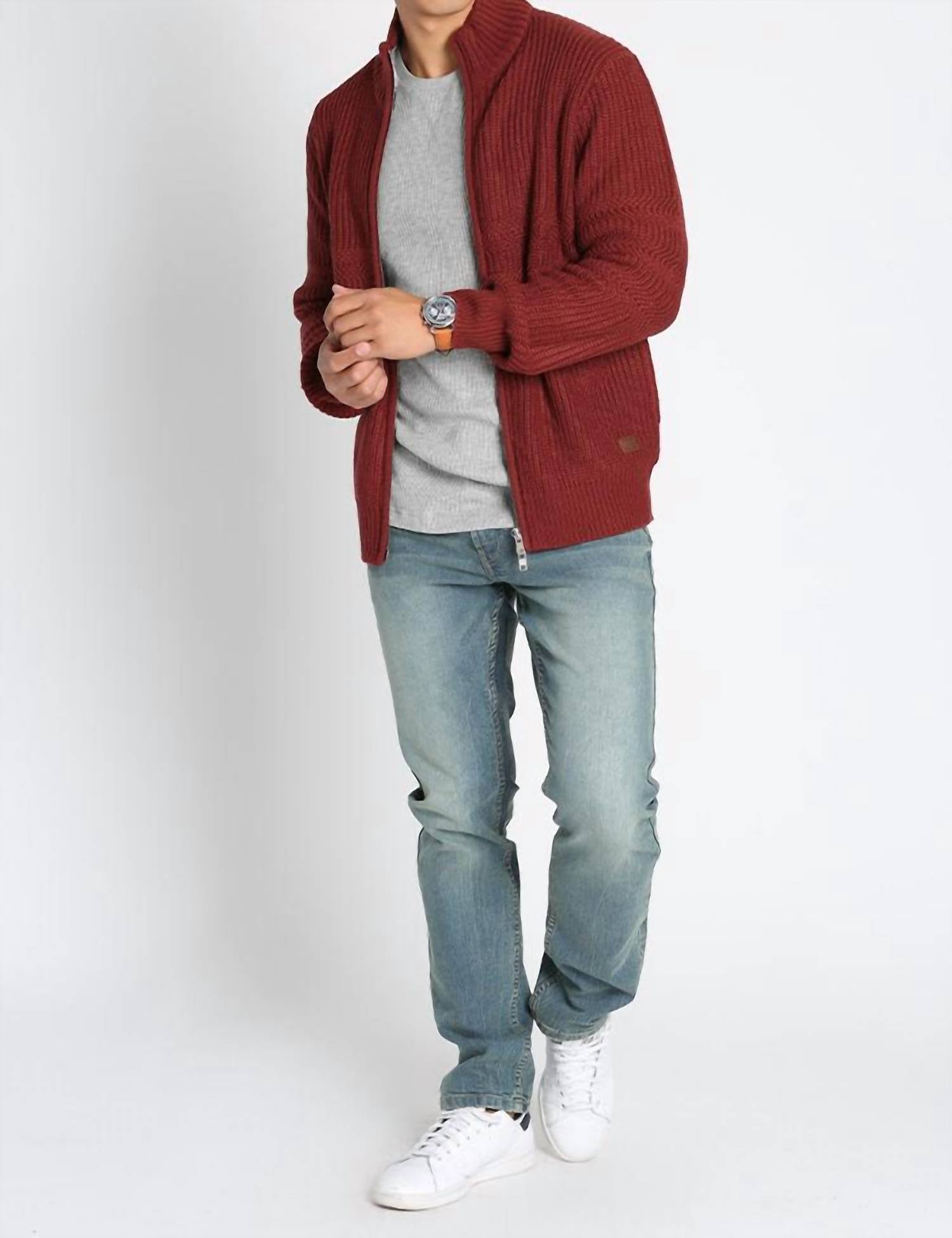 Elevate your wardrobe with the Full Zip Mockneck Sweater by JACHS NEW YORK, a perfect addition for the fall season. This men's scarlet sweater features long sleeves and is crafted from 100% acrylic, offering a textured pattern ideal for preppy style. Designed with a classic fit, it includes a convenient two-way zip closure, making it an essential for layering over a button-down or tee. Imported and styled for Thanksgiving travel, this piece seamlessly blends practicality and style.