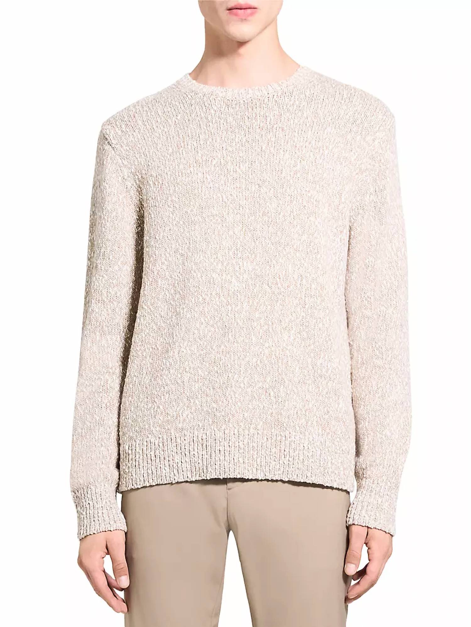 Seamless blend of relaxation and style in a heathered cotton pumice color. Boasts long sleeves and classic crew neckline. Crafted entirely from certified organic cotton. Designed in a lightweight knit. Features a relaxed fit for unparalleled comfort. Dry clean only.