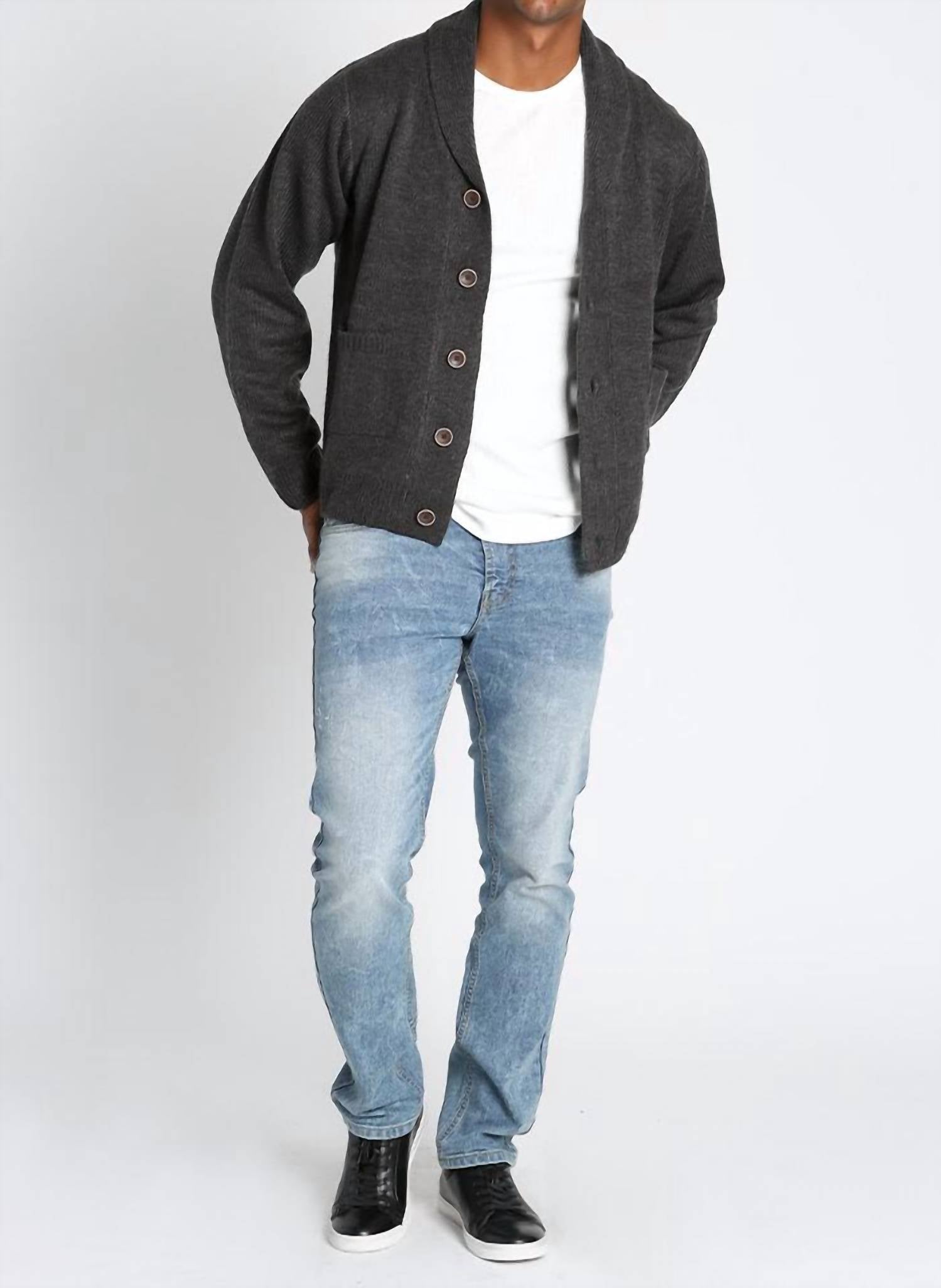 The JACHS NEW YORK Hemingway Shawl Cardigan is a sophisticated addition to any wardrobe, perfect for the preppy fall season or Thanksgiving travel. Crafted from 100% Acrylic, this textured long sleeve cardigan offers a classic fit and features a stylish collar. The imported design includes a practical 5-button closure and convenient pockets. As an essential layering piece, care instructions are unspecified for this garment.