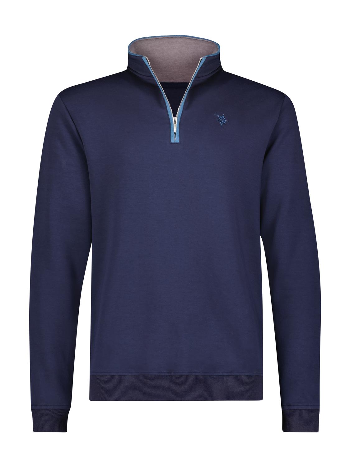 Introducing the Men's Turnberry Half-zip Pullover by White Water Life, a sophisticated option for the modern wardrobe. Featuring long sleeves and a mockneck, this pullover boasts a luxurious modal composition, emphasizing softness and comfort. Designed in a striking navy color, its suede zipper with a chrome half-zip pull adds a touch of elegance suitable for both dinner parties and the office. Closure: Zip closure.