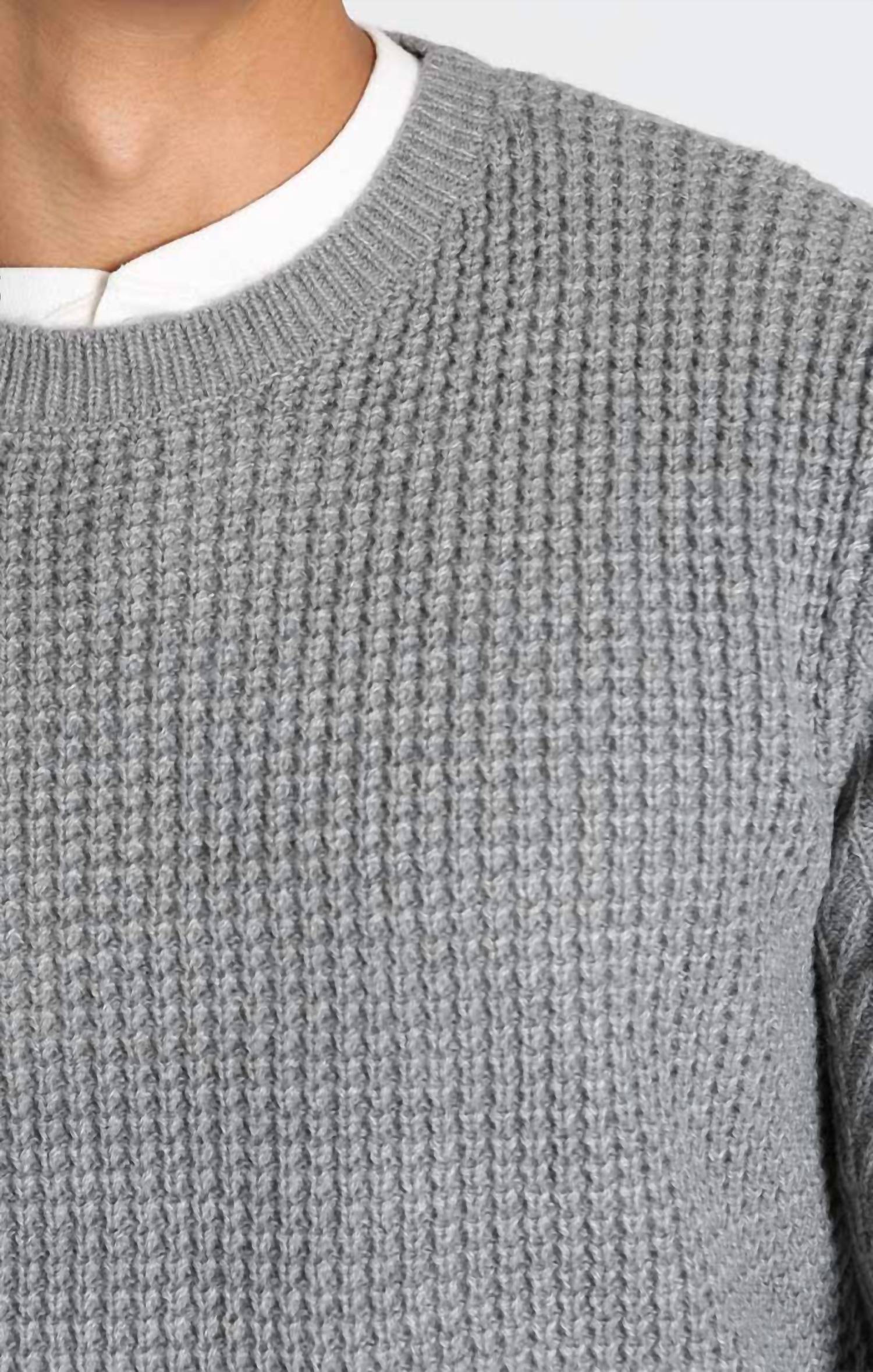 Discover the Mixed Stitch Waffle Crewneck Sweater by JACHS NEW YORK, a perfect addition to your fall wardrobe. This textured, grey crewneck sweater features long sleeves, ideal for layering or wearing standalone. Composition: 100% Acrylic. Crafted with a pull-on design and imported from premium sources, this men's sweater combines classic fit with a modern twist for your travel and Thanksgiving occasions.