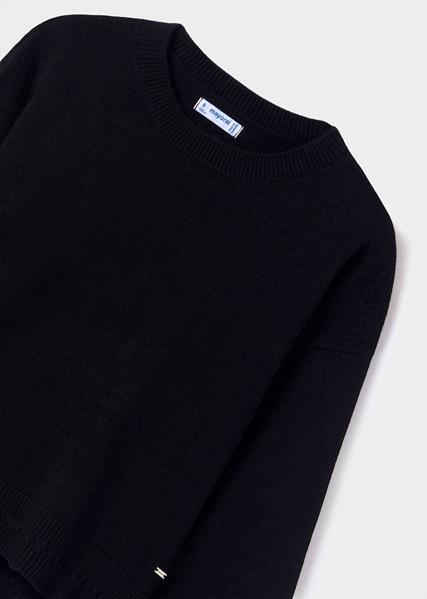 Meet the Men's Basic Sweater by Mayoral, an essential piece crafted for timeless comfort. This solid black sweater boasts long, relaxed sleeves and a crewneck, perfect for elevating any vacation wardrobe. Made from a viscose blend of 47% viscose, 30% polyamide, and 23% polyester, it's a pullover design that ensures ease of wear. Care is straightforward: machine wash cold, lay flat to dry, and cool iron as needed.