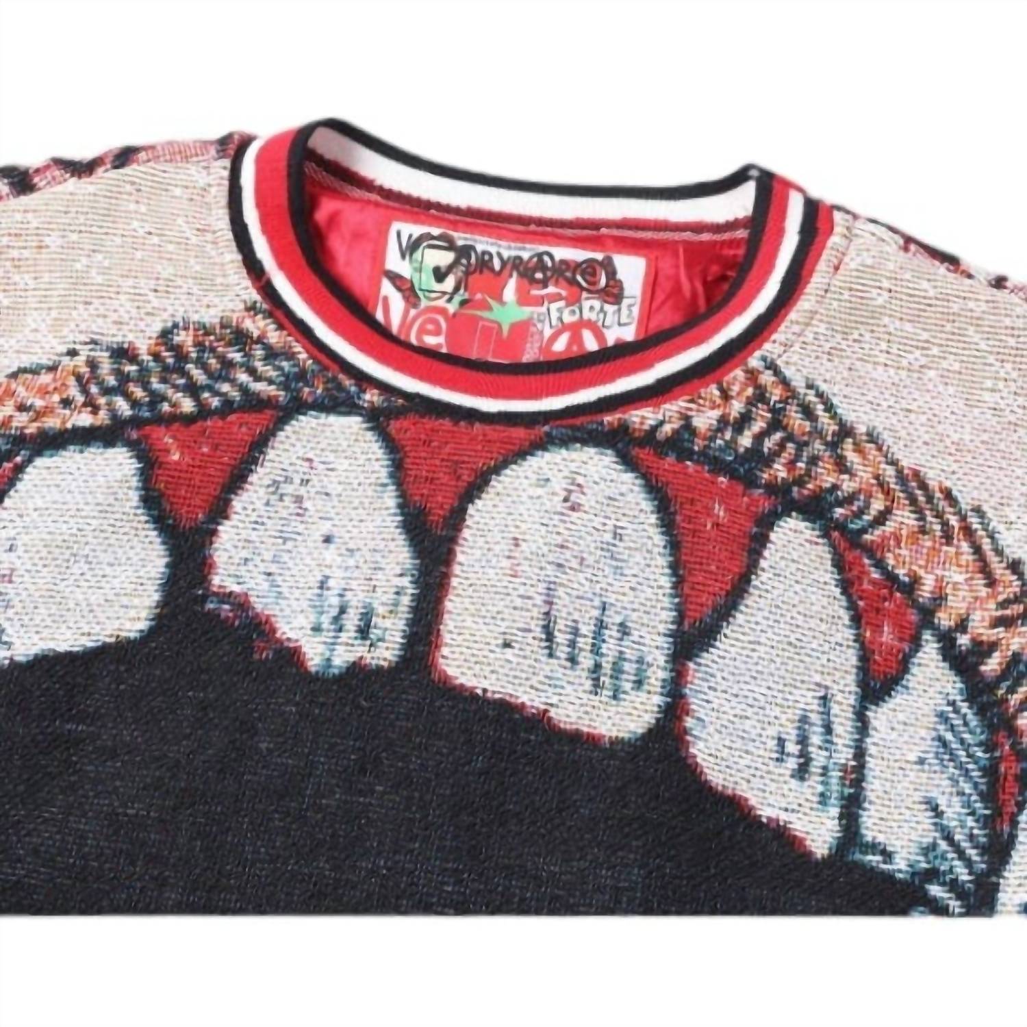 The Men's Crewneck Sweater by Very Rare is a standout piece in bold red, featuring a captivating graphic design by Raf Reyes. With long sleeves and a classic crewneck, this sweater is made from durable polyester, ideal for contemporary style enthusiasts. Featuring a pull-on closure, it's designed without pockets for a sleek silhouette.