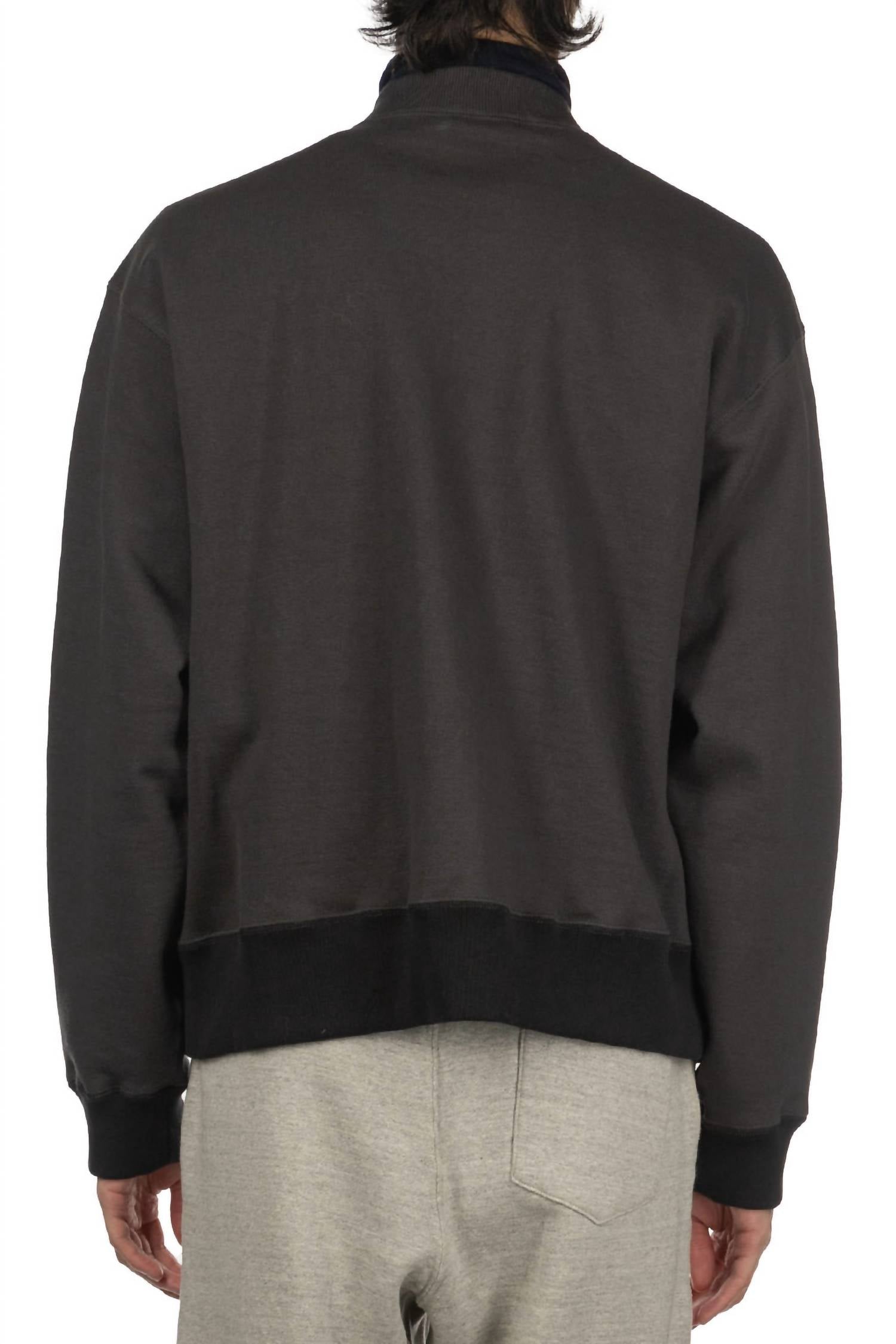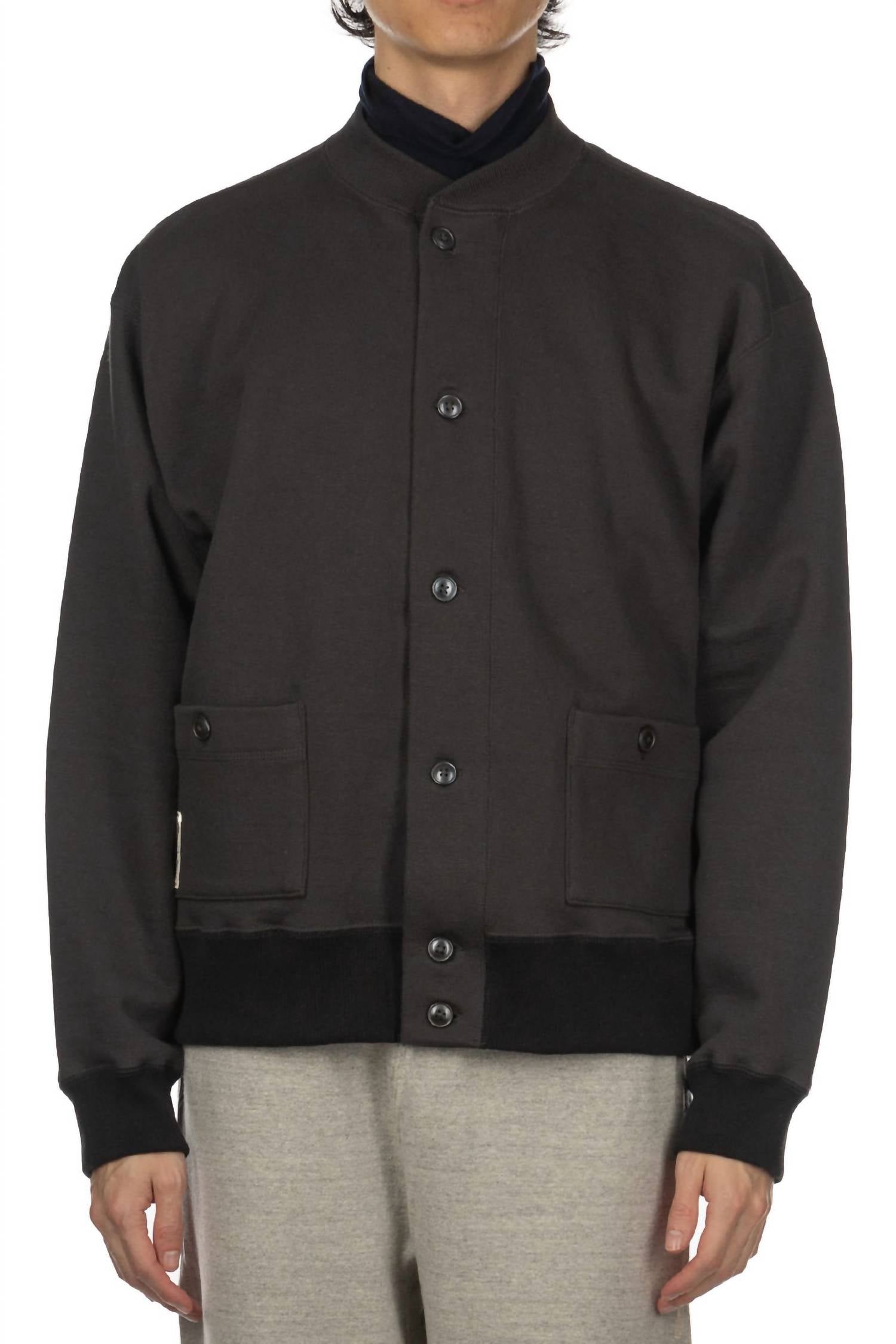 Embrace the classic style of the 50's Cardigan by Nigel Cabourn, designed with long sleeves and crafted from 100% cotton. This super heavyweight 20.5oz loopback jersey piece in solid charcoal features a relaxed silhouette with contrast ribbed hem and cuffs for a timeless look. With its button closure and practical front pockets, this cardigan blends functionality with vintage-inspired aesthetics. Proudly made in Japan, it draws inspiration from 1950's American leisurewear for a touch of retro flair.