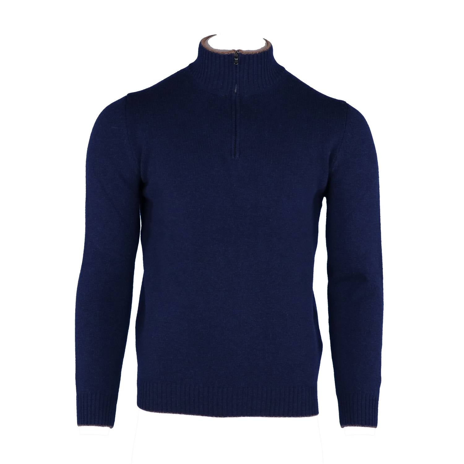 The Men's Merino Wool Quarter Zip Sweater by Seaward & Stearn is a refined addition to any wardrobe. Made from 100% Merino Wool, this long sleeve piece offers unparalleled softness and warmth. Crafted in England, the navy sweater is enhanced with subtle khaki trims at the collar, cuffs, and waistband for a touch of elegance. With a pull-on closure, it pairs beautifully with a dress shirt for a smart, sophisticated look.
