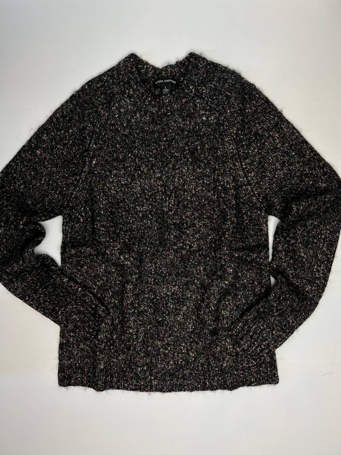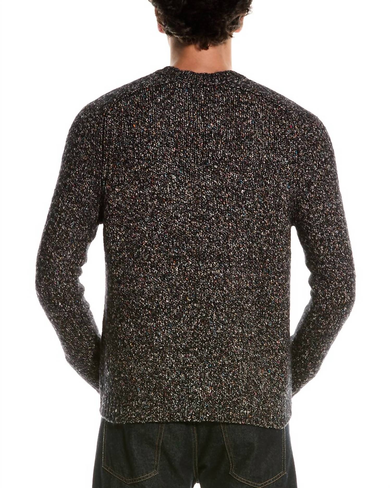 Indulge in luxury with the Italian Saddle Sweater by Autumn Cashmere, perfect for a refined and vibrant style. This long sleeve crewneck is crafted from a rich 100% cashmere blend, offering ultimate comfort and elegance. Adorned in a black Constellation design, it features multicolored yarn woven throughout. Made in Italy, this pull-on sweater comes without pockets and is recommended for dry clean only.