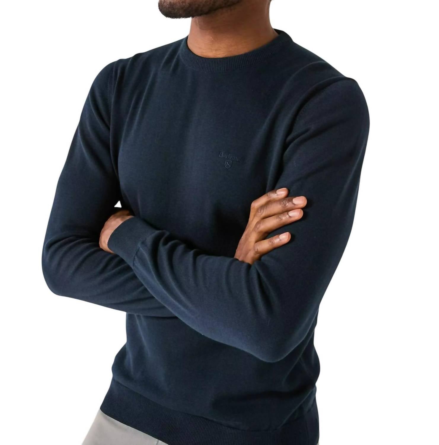 Elevate your casual wardrobe with the Pima Cotton Crew Neck Sweater by Barbour, expertly crafted for comfort and style. Featuring long sleeves and a classic crew neckline, this navy sweater is made from 100% combed Pima cotton, known for its softness and durability. The textured pattern and embroidered Barbour logo add a touch of sophistication. Machine wash.