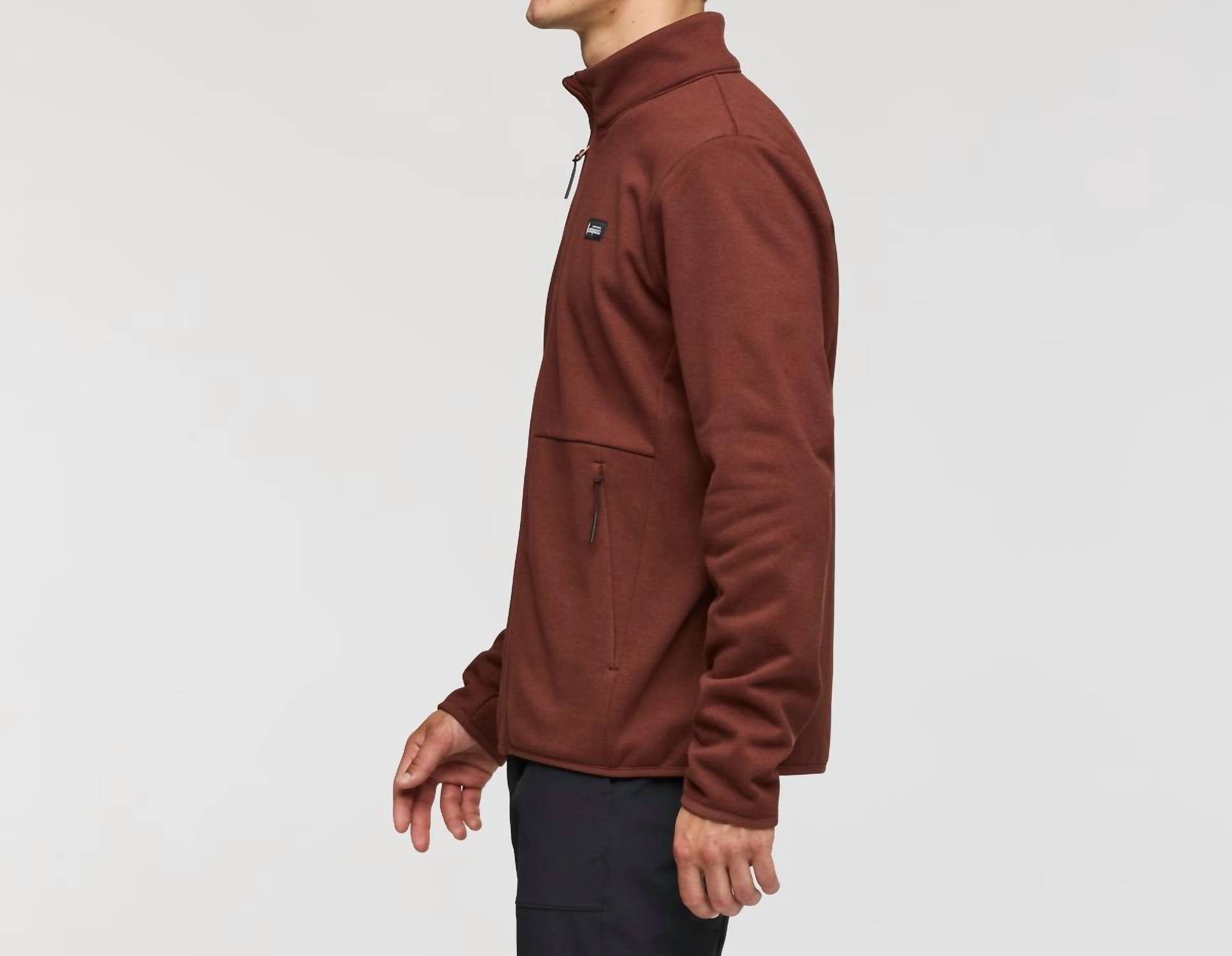 Elevate your casual adventures with the Cotopaxi Envo Fleece Full-Zip Jacket in Heather Chestnut, designed for both style and functionality. This men's long sleeve jacket is crafted from 100% recycled polyester with a weight of 226gsm, featuring a brushed fleece interior for added comfort. The thoughtful collar construction and zip closure enhance its practicality, while two zippered hand pockets offer convenient storage. Experience the freshness of its anti-pilling finish, along with moisture-wicking properties that ensure you stay dry.