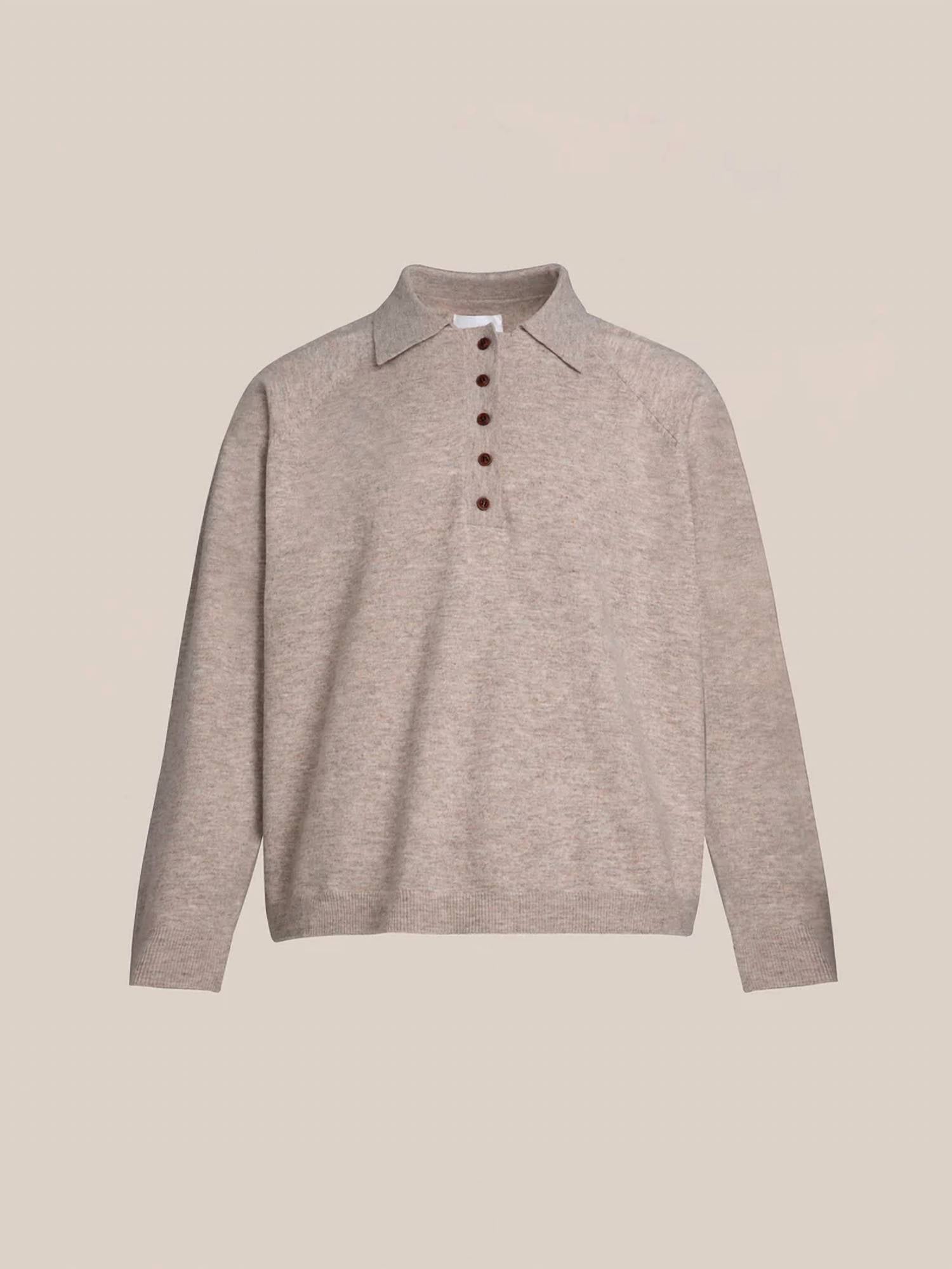 Found - Hay Collared Knit Henley Raglan Sleeves Sweater