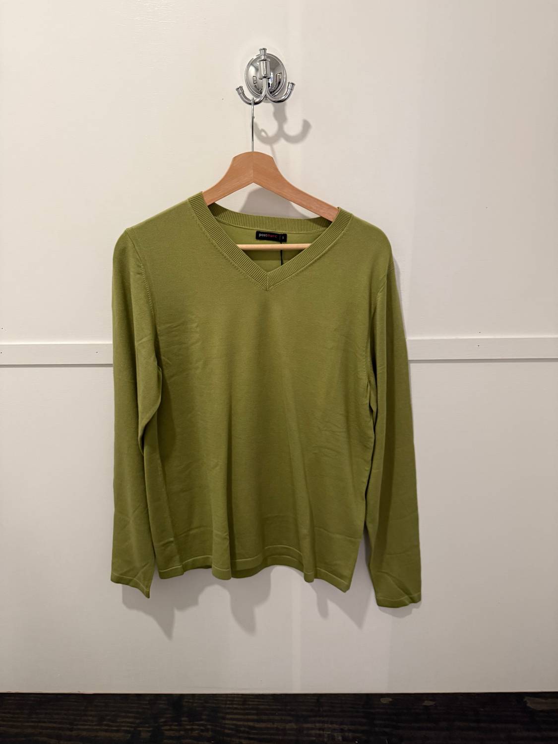 Discover the Postmarc Knitted V-neck Sweater, a preppy essential in classic olive that perfectly combines style with functionality. This women's travel-ready piece offers a tailored fit crafted from sustainably sourced 90% Tencel and 10% silk, providing a buttery-soft hand feel with superior breathability. With a solid pattern and pull-on closure, this sweater is designed for those who appreciate both elegance and comfort. Care: Hand wash cold, use mild detergent, wash inside out, dry flat away from heat source, avoid rough surfaces, cool iron if needed.