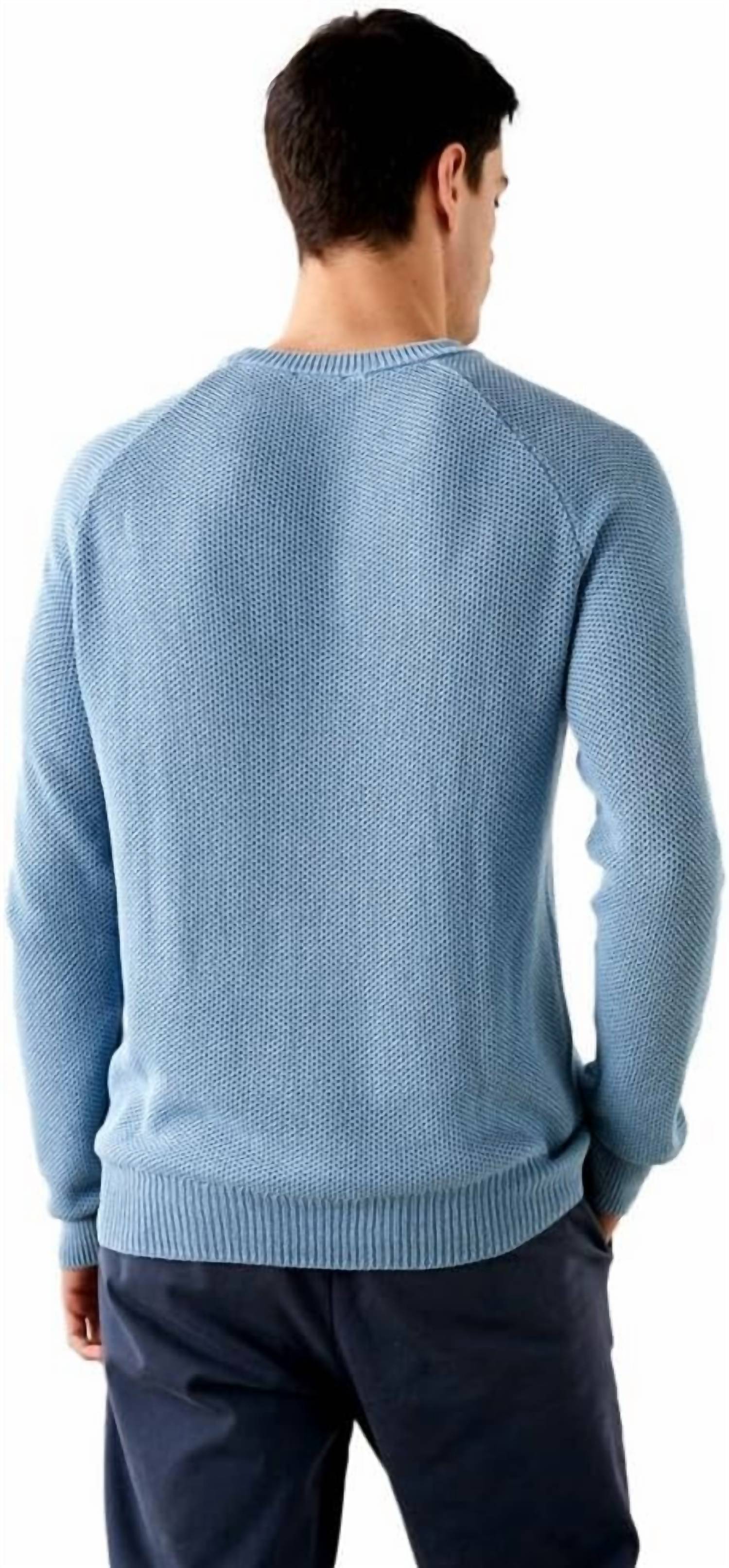 Meet the Sterling Sweater by Rails, a must-have for your winter wardrobe in a serene sunfaded blue. This men's crewneck sweater features long sleeves and a solid pattern, making it an ideal choice for holiday parties and preppy occasions. Crafted from comfortable 100% Cotton, it features a pull-on design for easy wear. Care: Hand wash and lay flat to dry.