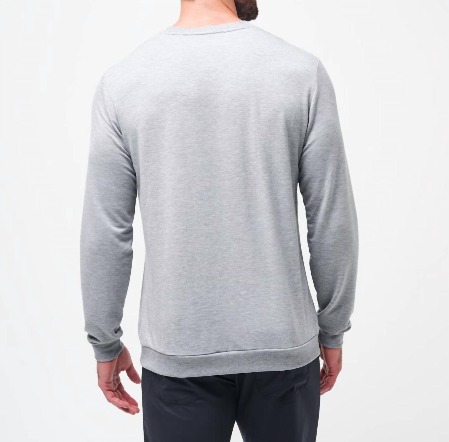 Introducing the Amenities Crew Sweater by TravisMathew, a perfect blend of comfort and style in heather light grey. Designed with a solid pattern, this long-sleeve crewneck sweater provides a versatile fit for winter holiday parties. Crafted from premium Modal/polyester/spandex with a pull-on closure for effortless wear, it doesn't compromise on style. With its preppy trend appeal, this sweater is an ideal choice for men's wardrobes.