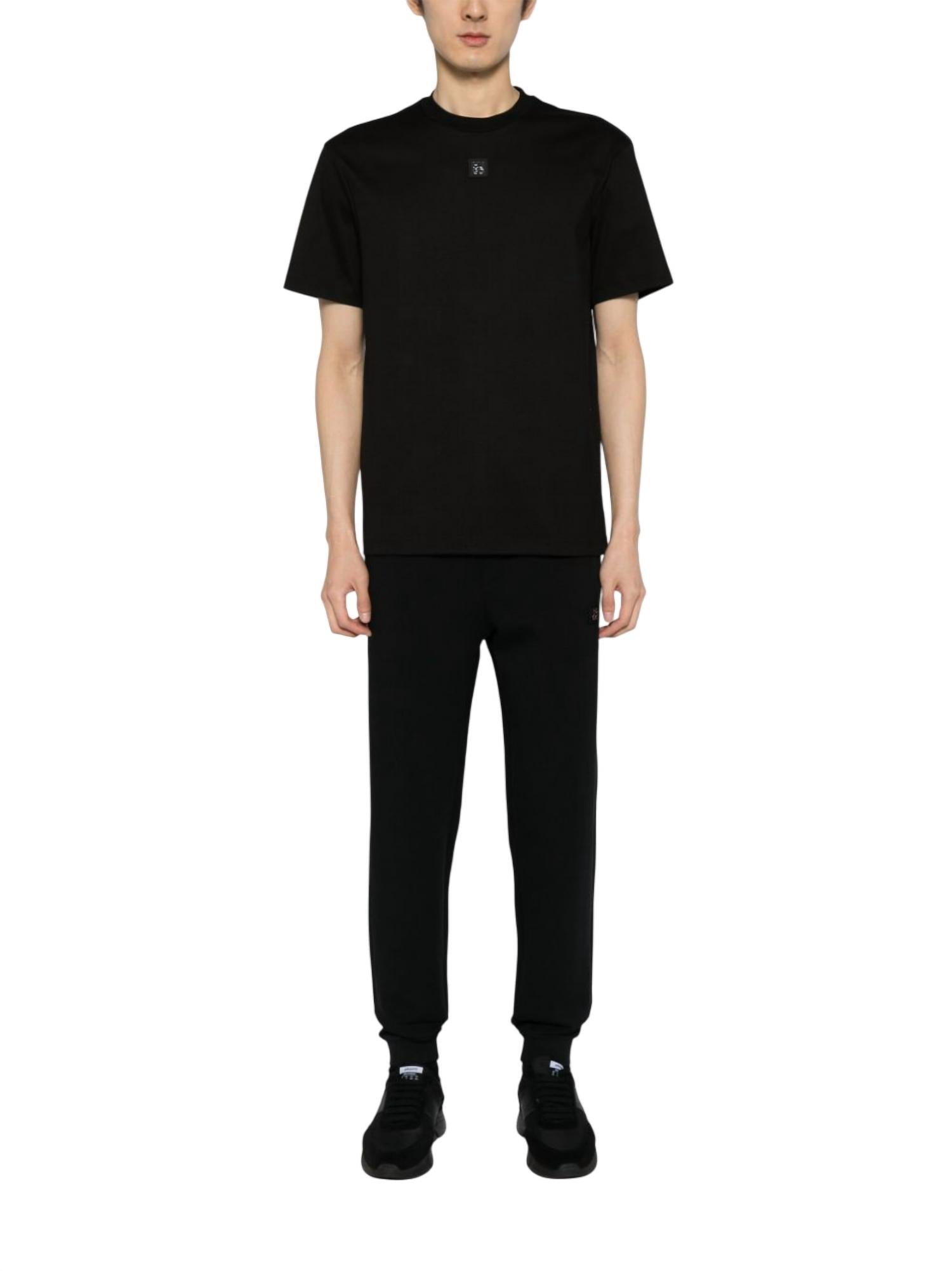 This product features a 91% cotton and 9% elastane blend for comfort and stretch. It has a tapered leg design with elastic cuffs and includes a logo patch on the side. It is machine washable for easy care.