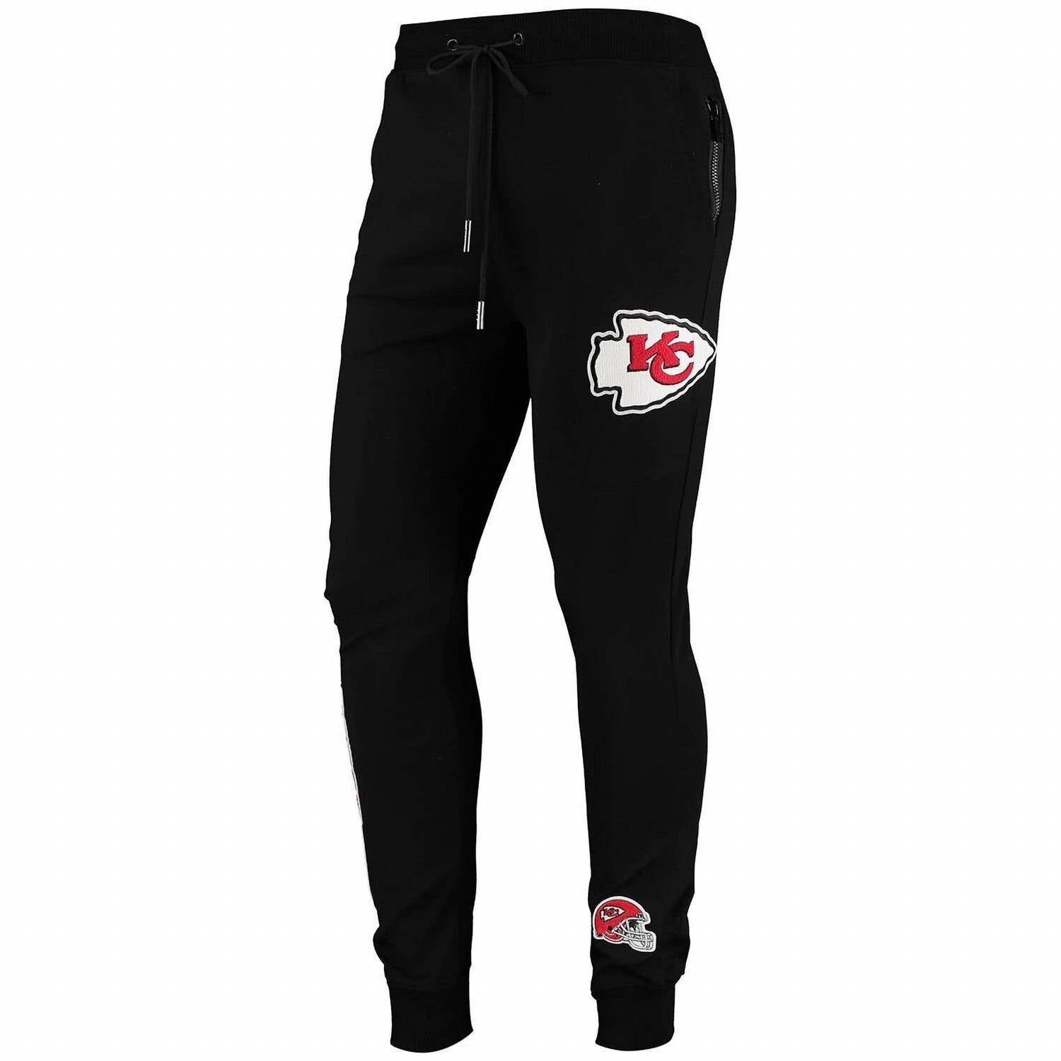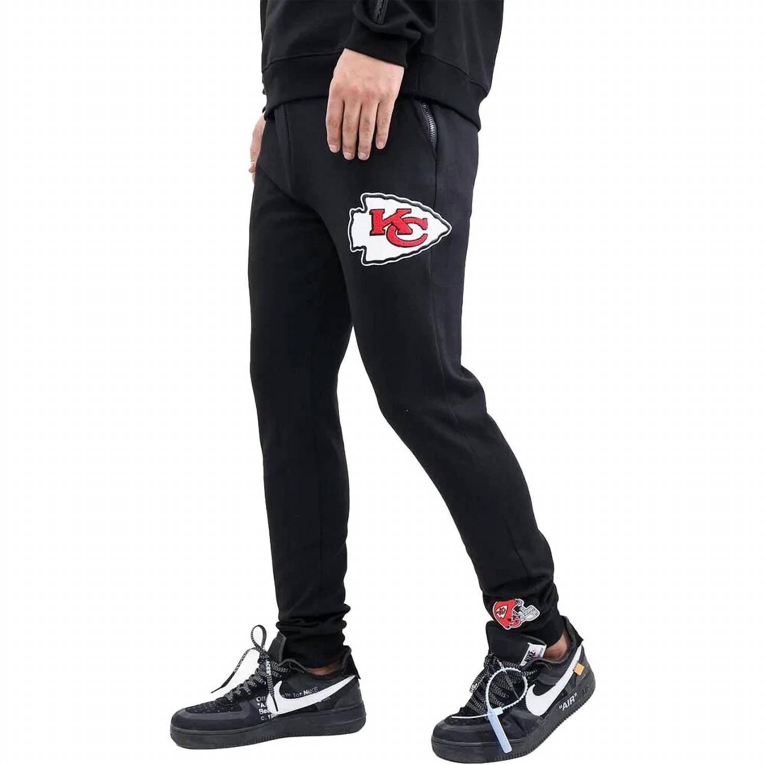Show your team spirit with the Kansas City Chiefs Logo Track Pants by Pro Standard, designed for relaxed comfort and style. Made from 100% cotton, these men's sweatpants feature a tapered leg and mid-rise waist, perfect for a comfortable fit on game day. The black graphic design complements the tie closure and practical pockets, making it an essential piece for streetwear trends. Ideal for spring, these track pants are a perfect addition to your collection.