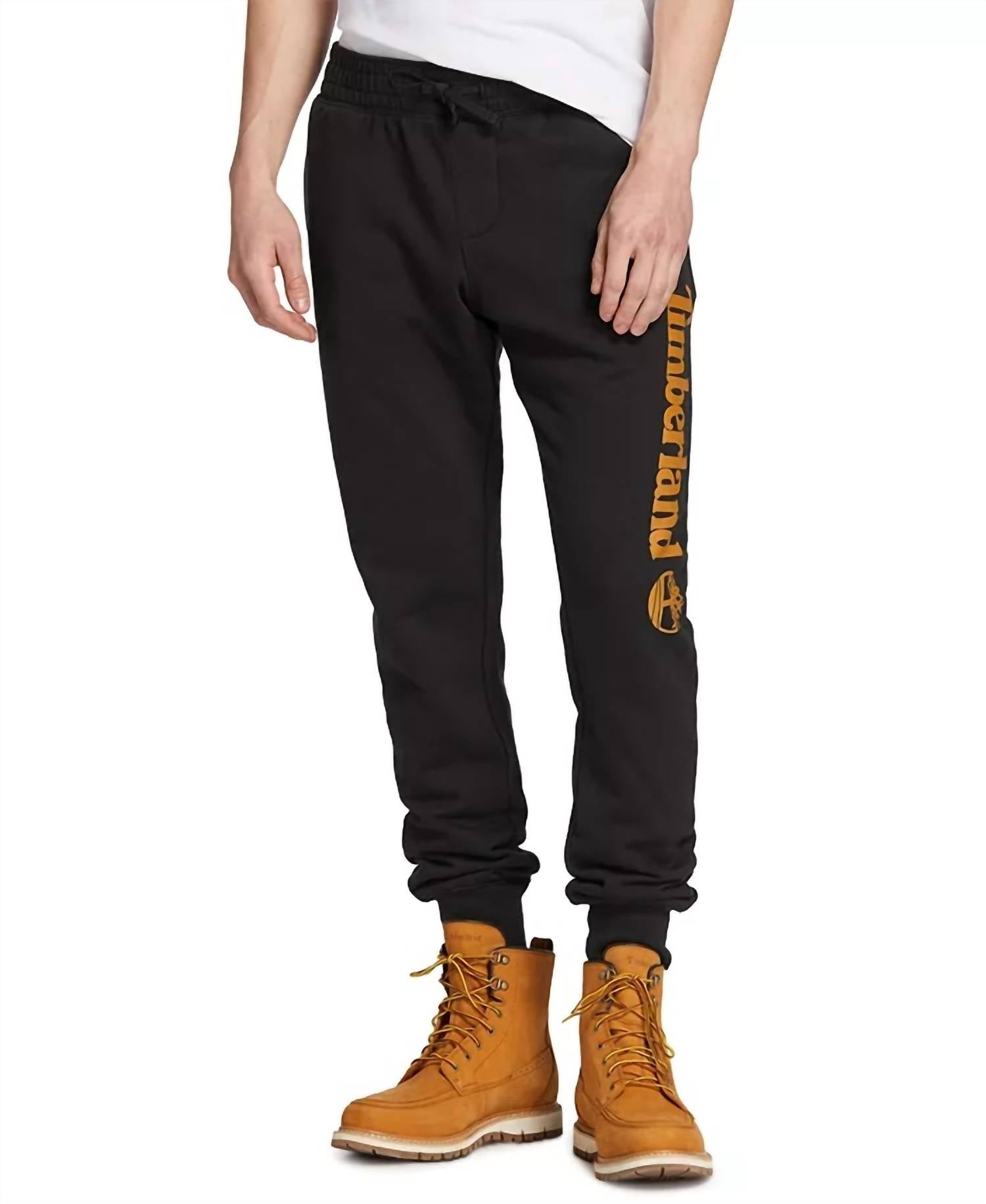 French terry fabric. Approx. inseam: 40". Regular fit. Elastic drawstring waistband. Two sideband pockets; two back welt pockets. Logo print at left leg; ribbed-knit cuffs. Cotton/polyester. Machine washable. Imported.