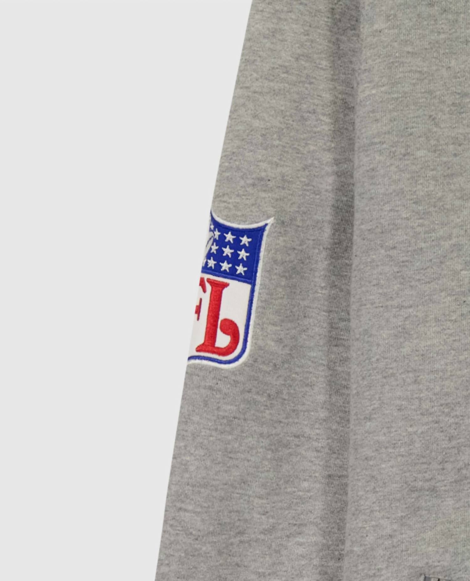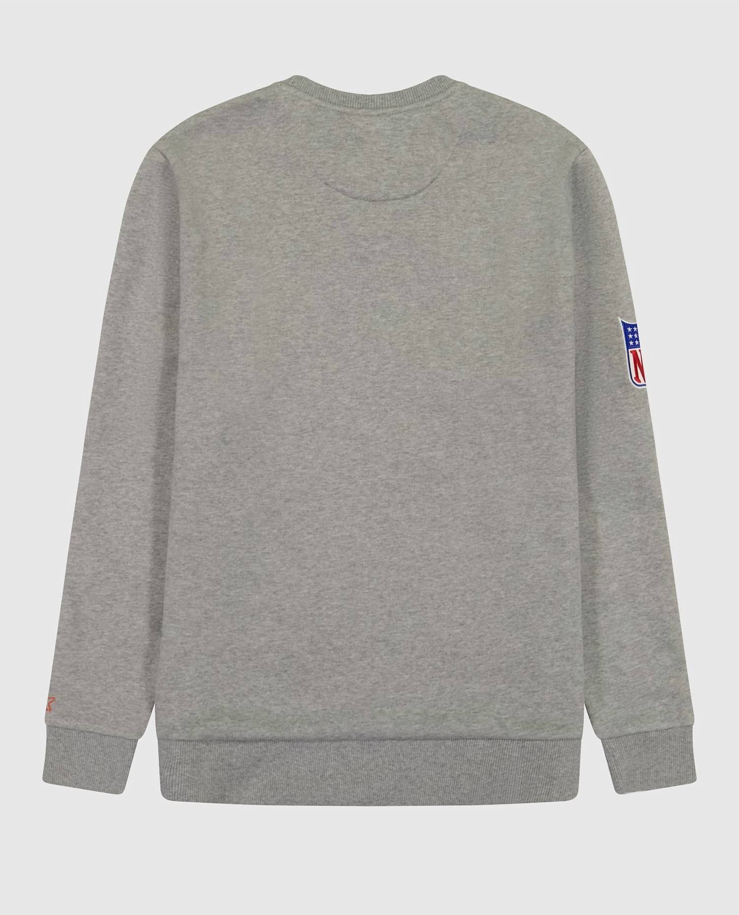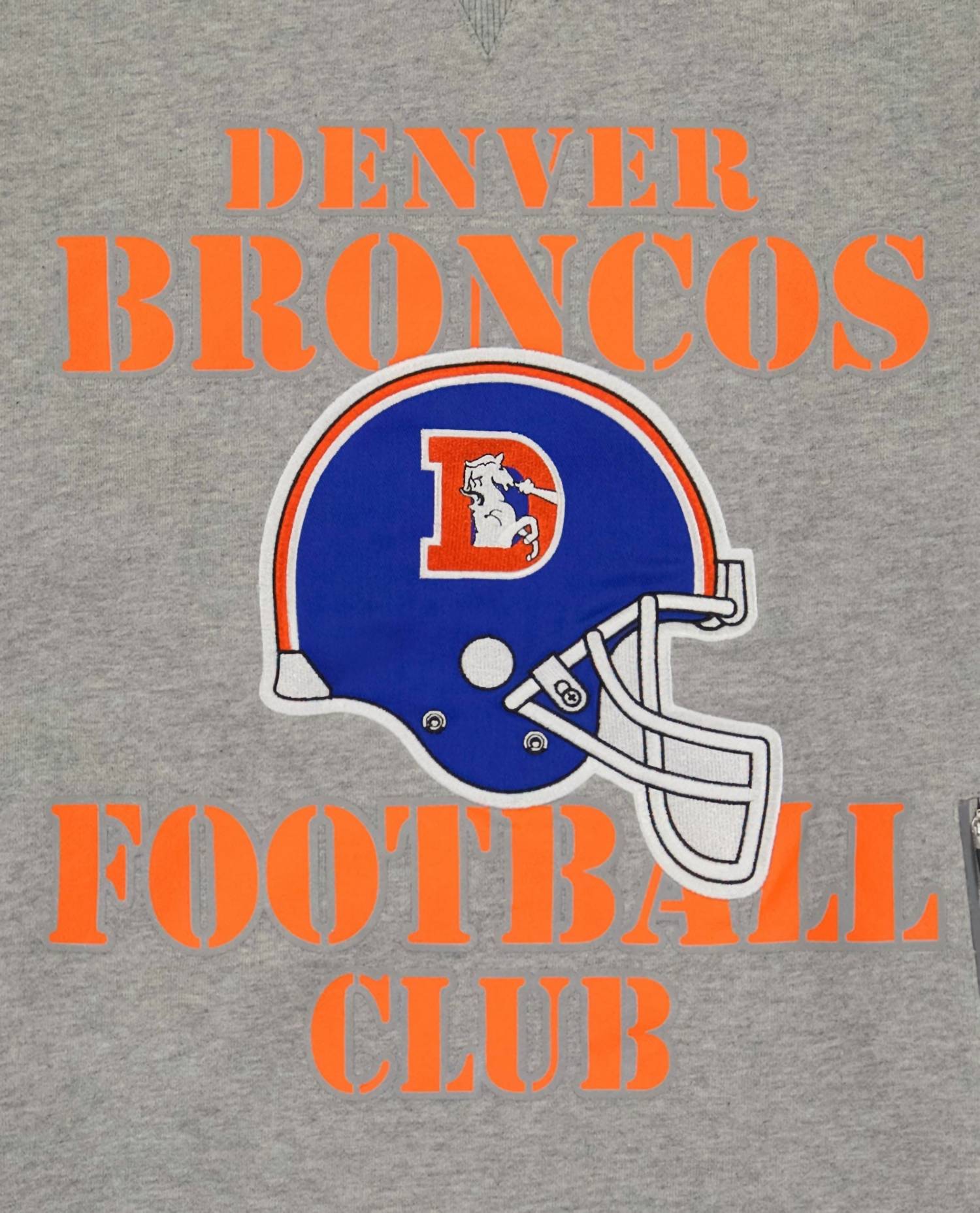 Introducing the Denver Broncos Crew Neck Sweatshirt by Starter, a must-have in Heather Grey for dedicated fans. This long sleeve sweatshirt features graphic elements, including a screen printed team name and city, along with a large team logo helmet appliqued at the front. Designed with a crewneck and pull-on closure, it includes a front zipper pocket accented by reflective detail. Perfect for showcasing team spirit in laid-back style.