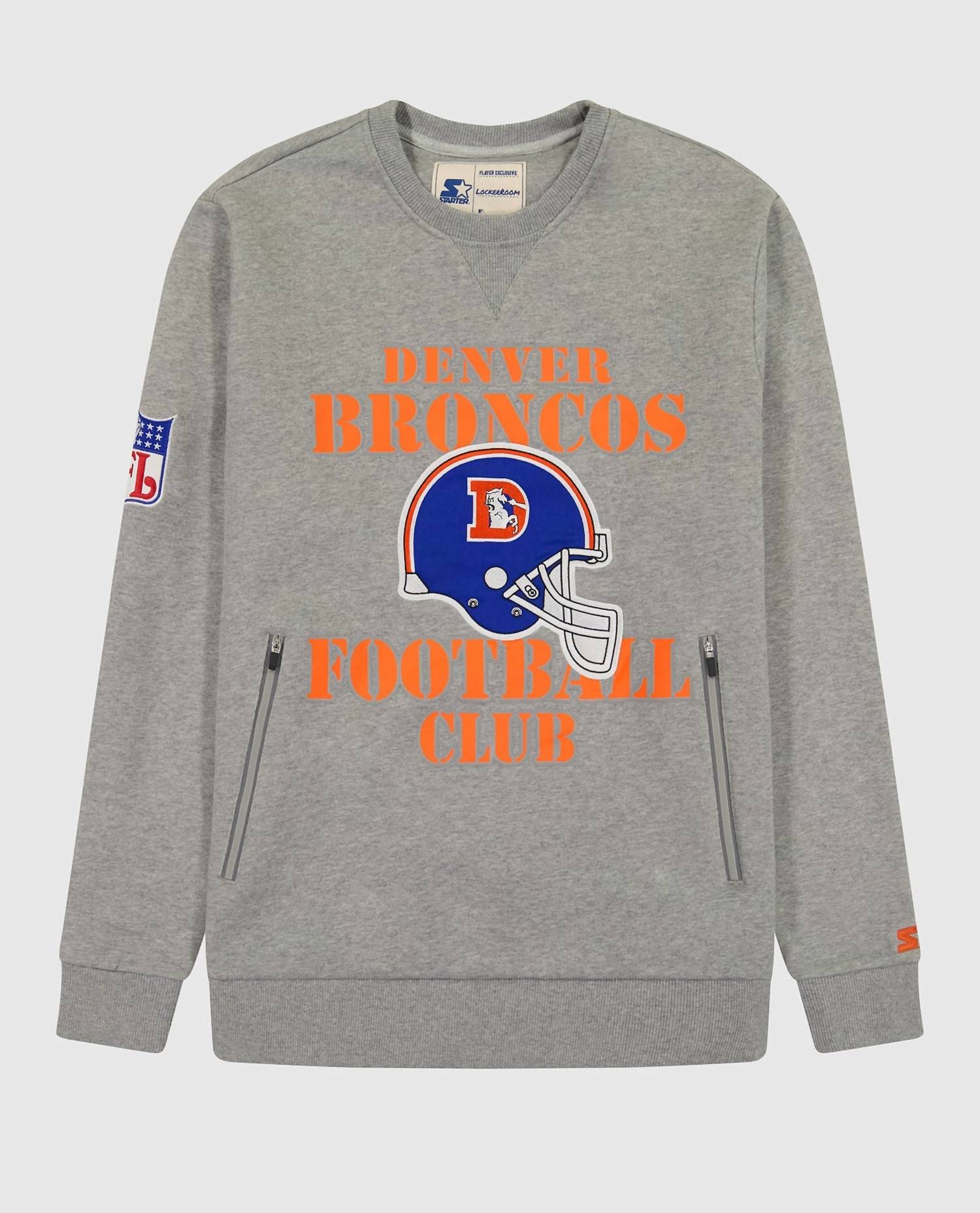 Starter - Men's Denver Broncos Crew Neck Sweatshirt With Zip Pockets