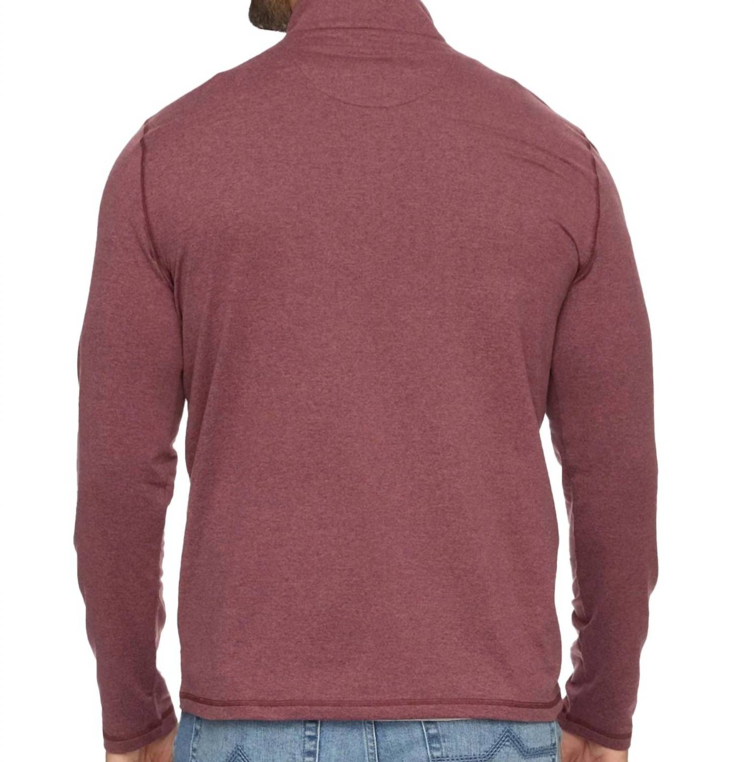 Introducing the Clutch Comfort 1/4 Zip Pullover Shirt by Flags & Anthem, a must-have maroon piece perfect for your athleisure wardrobe. With its long sleeves and mockneck, this streamlined pullover offers both warmth and style, effortlessly fitting your active lifestyle. Crafted from 90% polyester and 10% spandex, it features irresistibly soft, stretchy fabric that moves with you throughout the day. This versatile piece has a 28.5" medium length and is machine washable for easy care. Model Ryan is 6'2", 185 lbs, and wears a size medium.