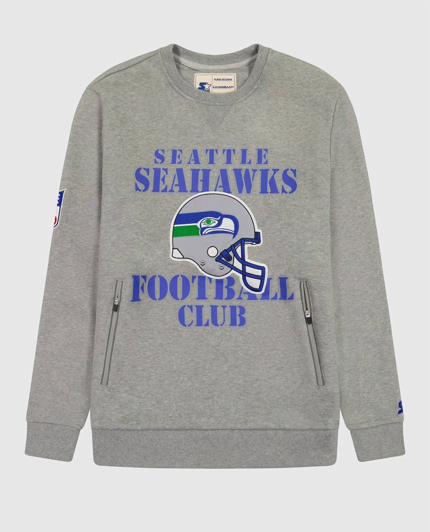 Starter - Men's Seattle Seahawks Crew Neck Sweatshirt With Zip Pockets