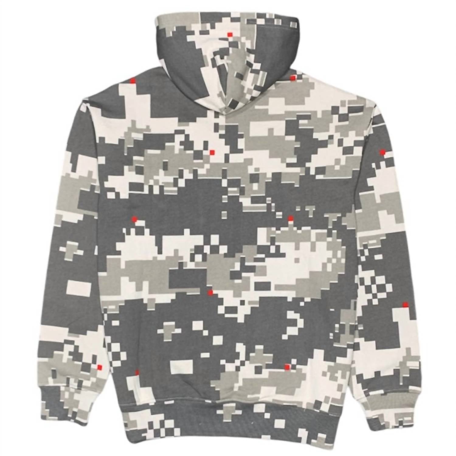 Introducing the Men's Digi Hoodie by IceCream, a stylish addition to your casual wardrobe. This hoodie features long sleeves and a bold camouflage pattern in the elegant Wind Chime color. Designed with a hooded neckline, it offers practicality with convenient pocket storage. Closure: Pull on. Care: Line dry.