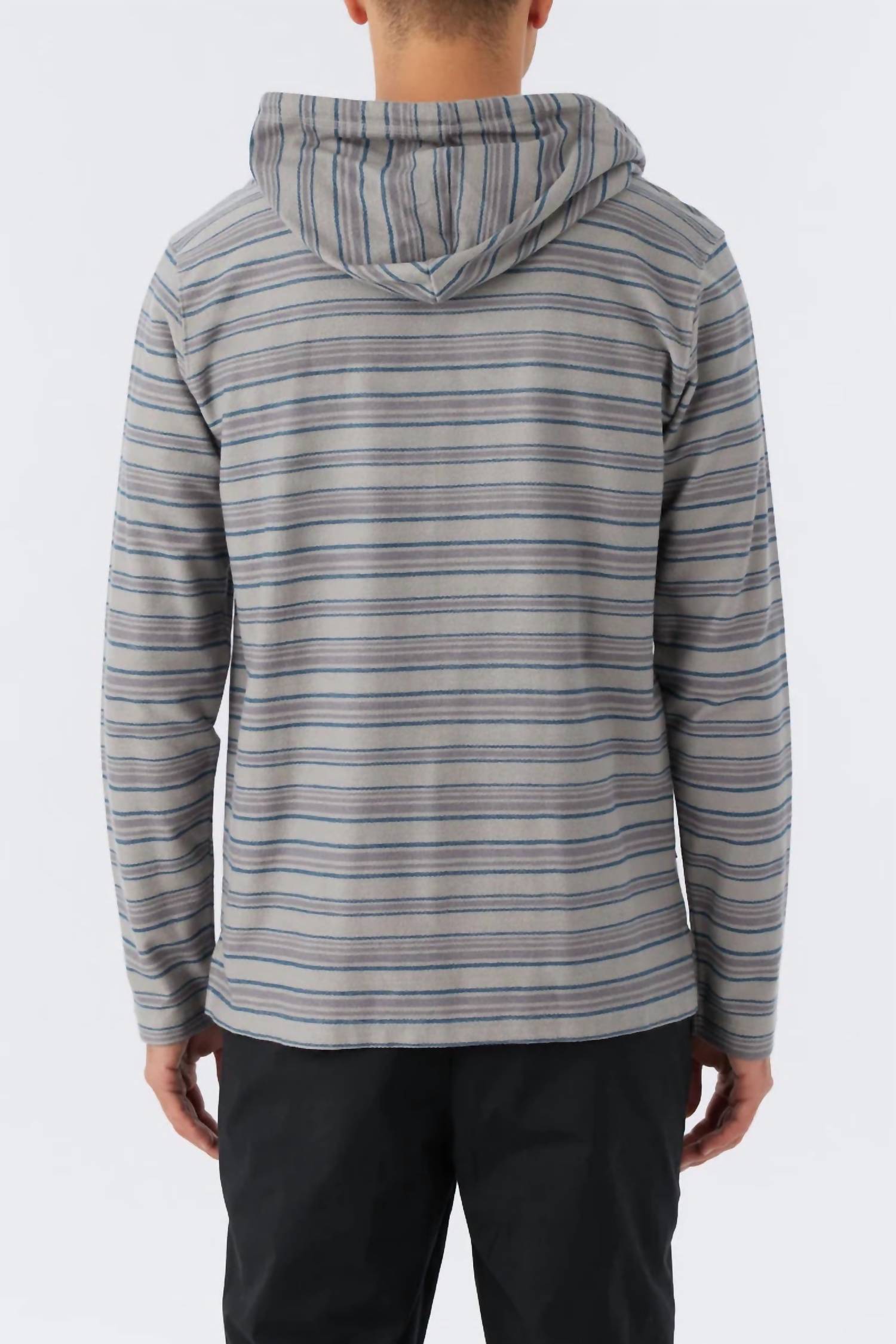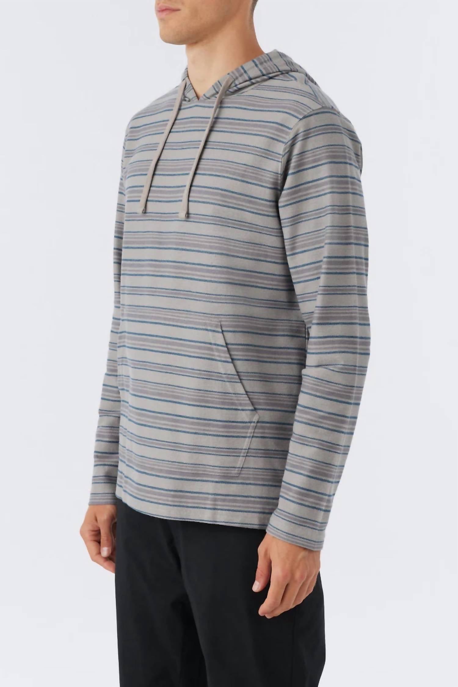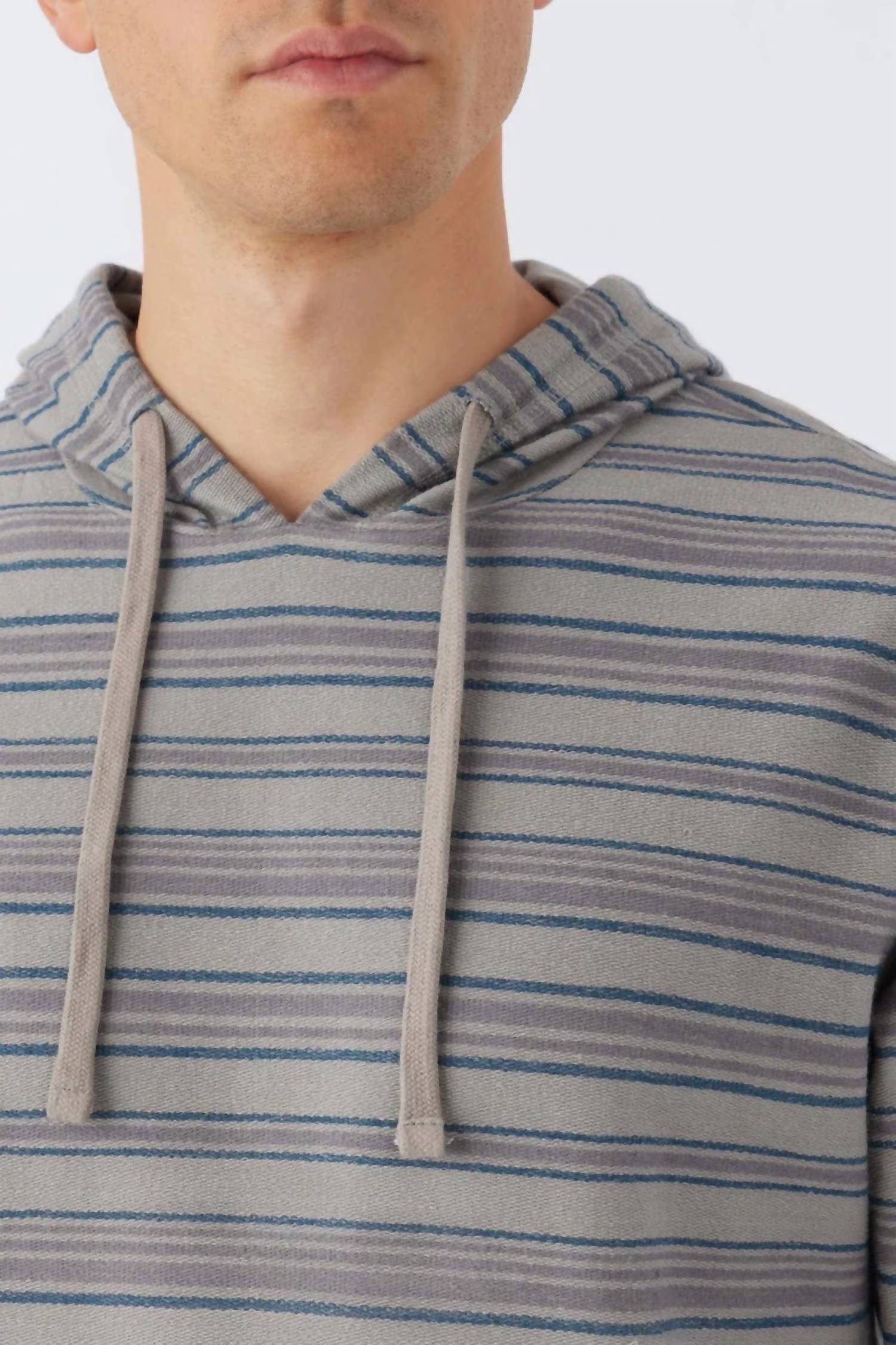 Discover the Fairbanks Pullover by O'NEILL, a versatile men's hoodie that's perfect for any occasion. This long-sleeve hoodie features a soft knit feel with a stylish yarn dye stripe design in light grey, ensuring a relaxed fit through the body and sleeves. Made from 100% cotton, it comes with a convenient front kangaroo pocket for added functionality. With its hooded neckline and pull-on closure type, this hoodie combines comfort and style effortlessly.