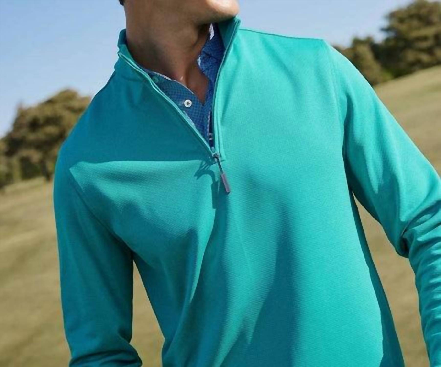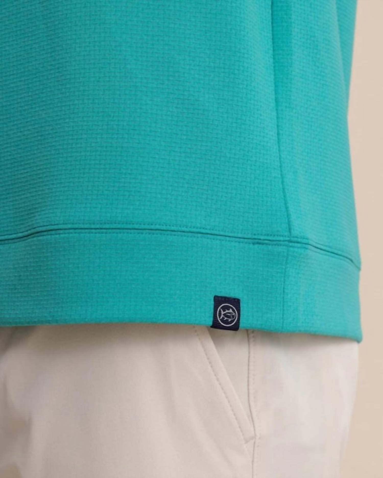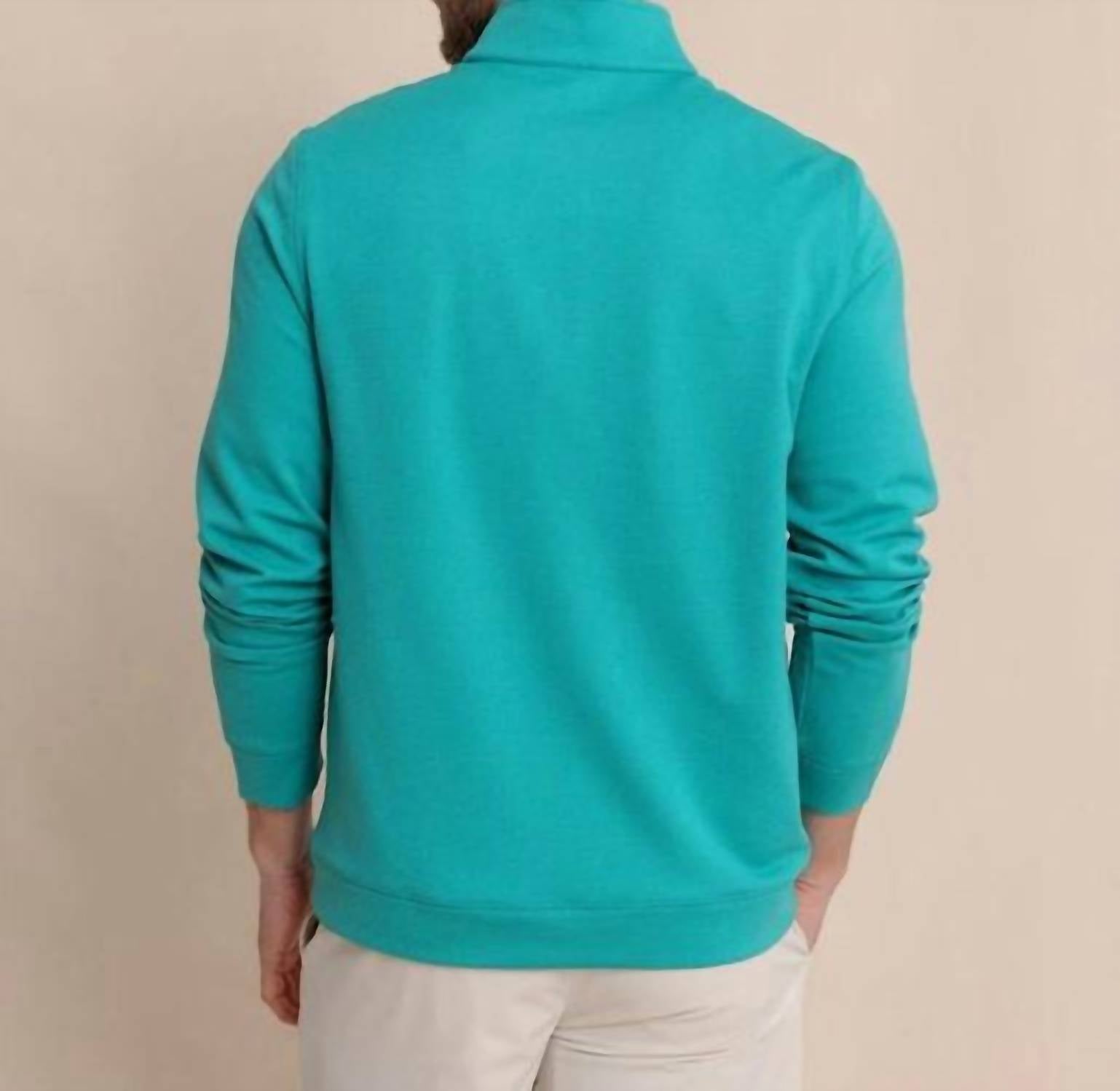 Southern Tide. Guard against the chill with this long-sleeve quarter zip. This thoughtfully constructed quarter-zip pairs set-in sleeves with a two-piece collar for put-together appeal. The elastic back neck tape moves with your body while our premium stretch-enhanced material keeps you comfortable from boardroom meetings to backswings at the driving range. Wicking. Stretch. Machine Wash Models are 6'1-6'2" wearing a size medium.