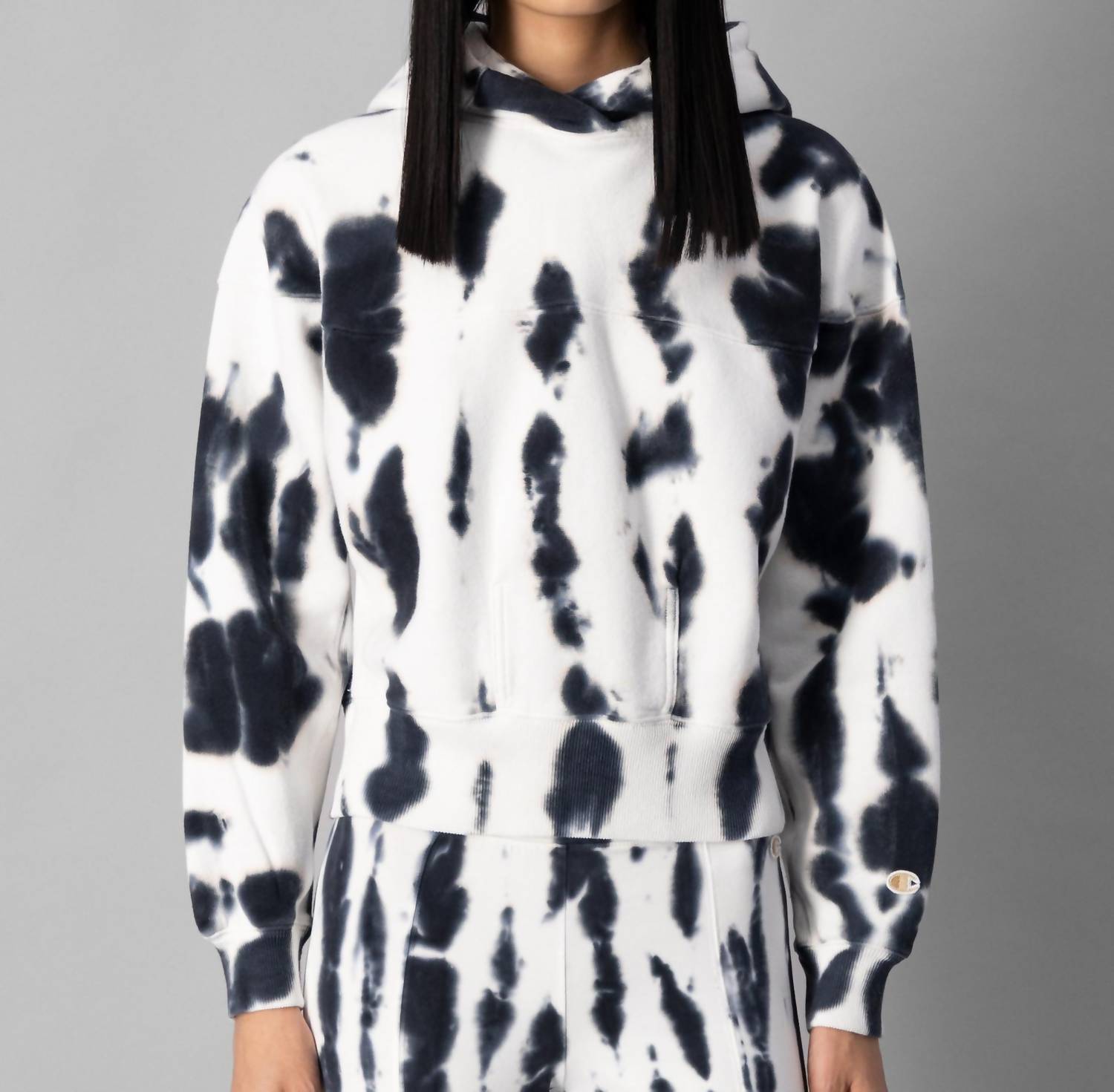 ON-TREND TIE DYE STEPS UP YOUR HOODIE GAME The structured, feminine silhouettes of our Reverse Weave Tailored Collection level up your new season line-up. Distinctive tie-dye effect and modern, cropped length make this hoodie a must-have addition to your regular rotation. Crafted from our classic heavyweight fleece, boxy fit cropped hoodie with high neck is cut on the cross-grain to resist vertical shrinkage so the fit stays true, with a brushed interior for added softness. The details make the difference with ribbed cuffs and waist, ribbed side panels for ease of movement, and pinch pleat at the front for an ultra-feminine touch. Embroidered C patch logo at left wrist adds authentic Champion style. This product runs small; order one size up for best fit.