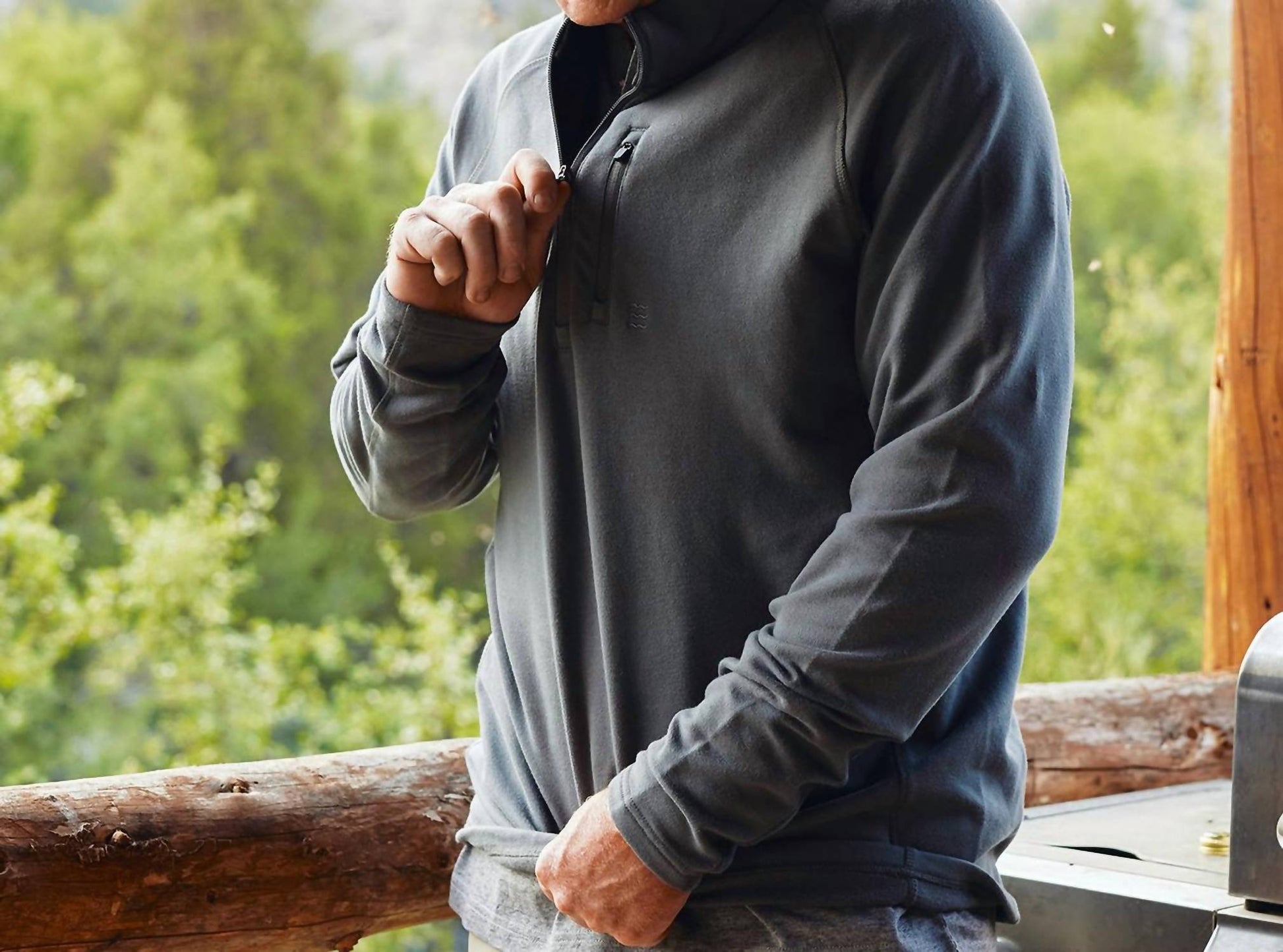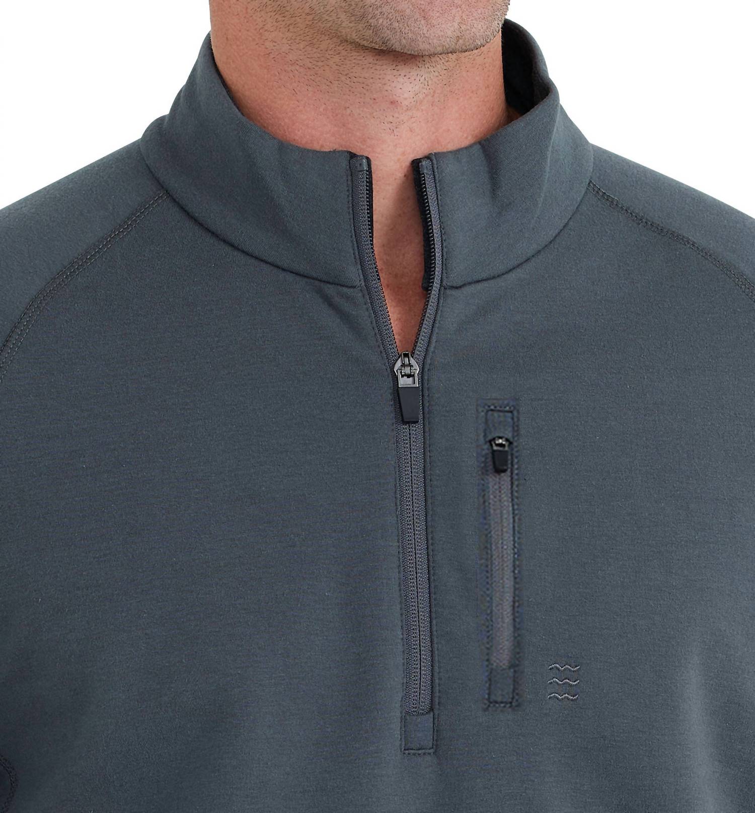 Heather: 48% Viscose From Bamboo / 48% Cotton / 4% Spandex. Heavyweight stretch fleece. Ultra-soft, interior brush. Vertical, left chest pocket. Wave icon embroidery at pocket