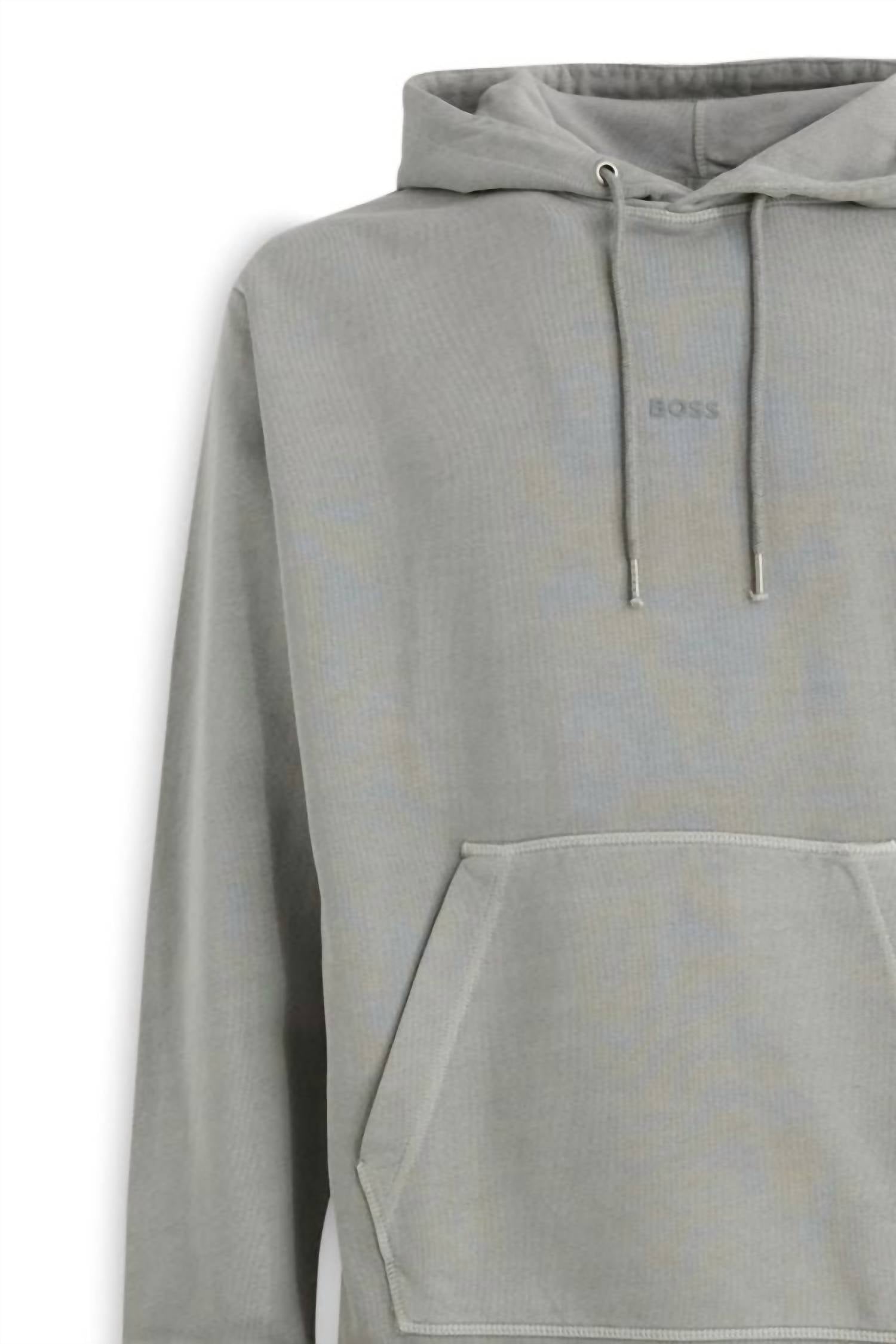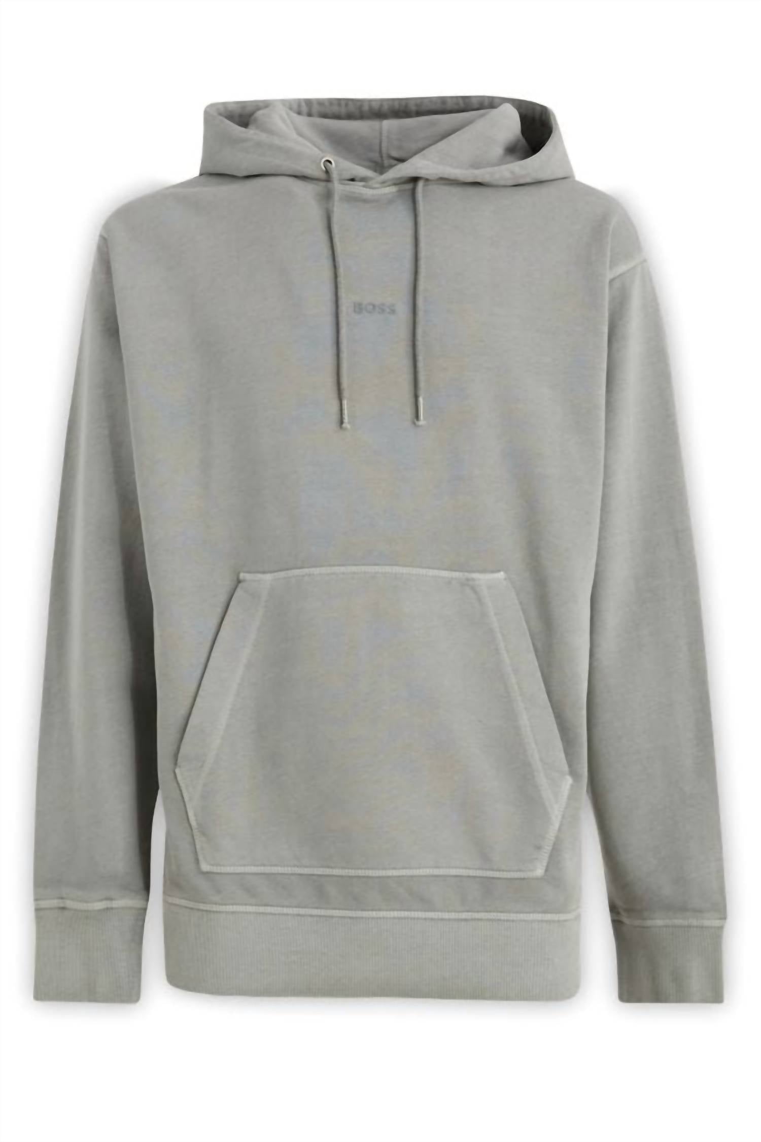 Introducing the Men's Logo Details Hooded Sweatshirt by Hugo Boss, a stylish wardrobe addition in subtle grey. Designed with long sleeves and crafted from 100% cotton, this solid-patterned sweatshirt is made in Germany, offering premium quality and style. This pull-on piece is perfect for vacations during the fall season. It features convenient pockets and showcases subtle logo details for a touch of elegance.