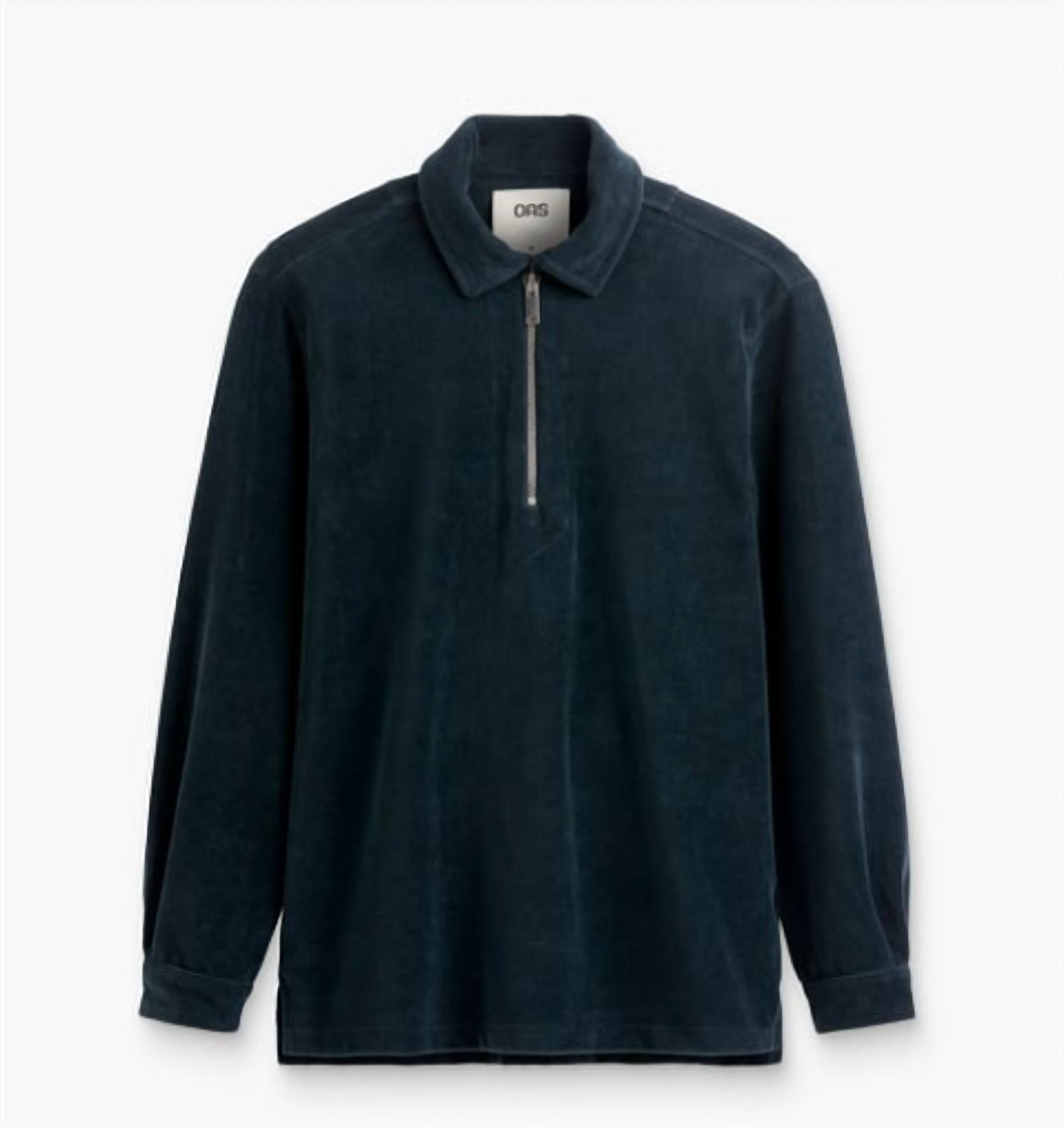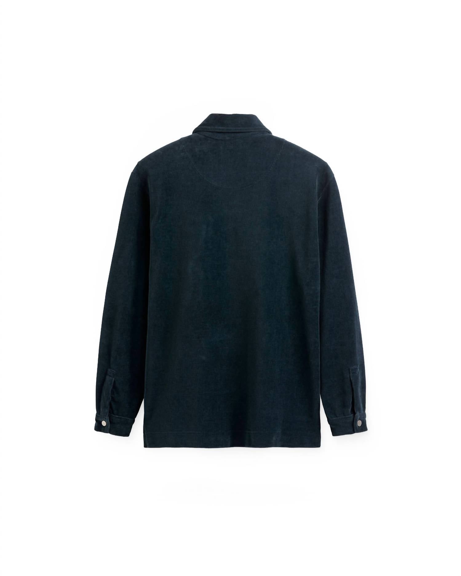 Introducing the Men's Savvy Long Sleeve Shirt by OAS, an elegant addition to any wardrobe in Dark Navy. This textured, cotton-blend piece is crafted from 80% cotton and 20% polyester with a luxurious corded stretch velour. It features a stylish half-zip at the front for easy wear. Made in Portugal, this shirt is easy to care for with machine washing and should be laid flat to dry.