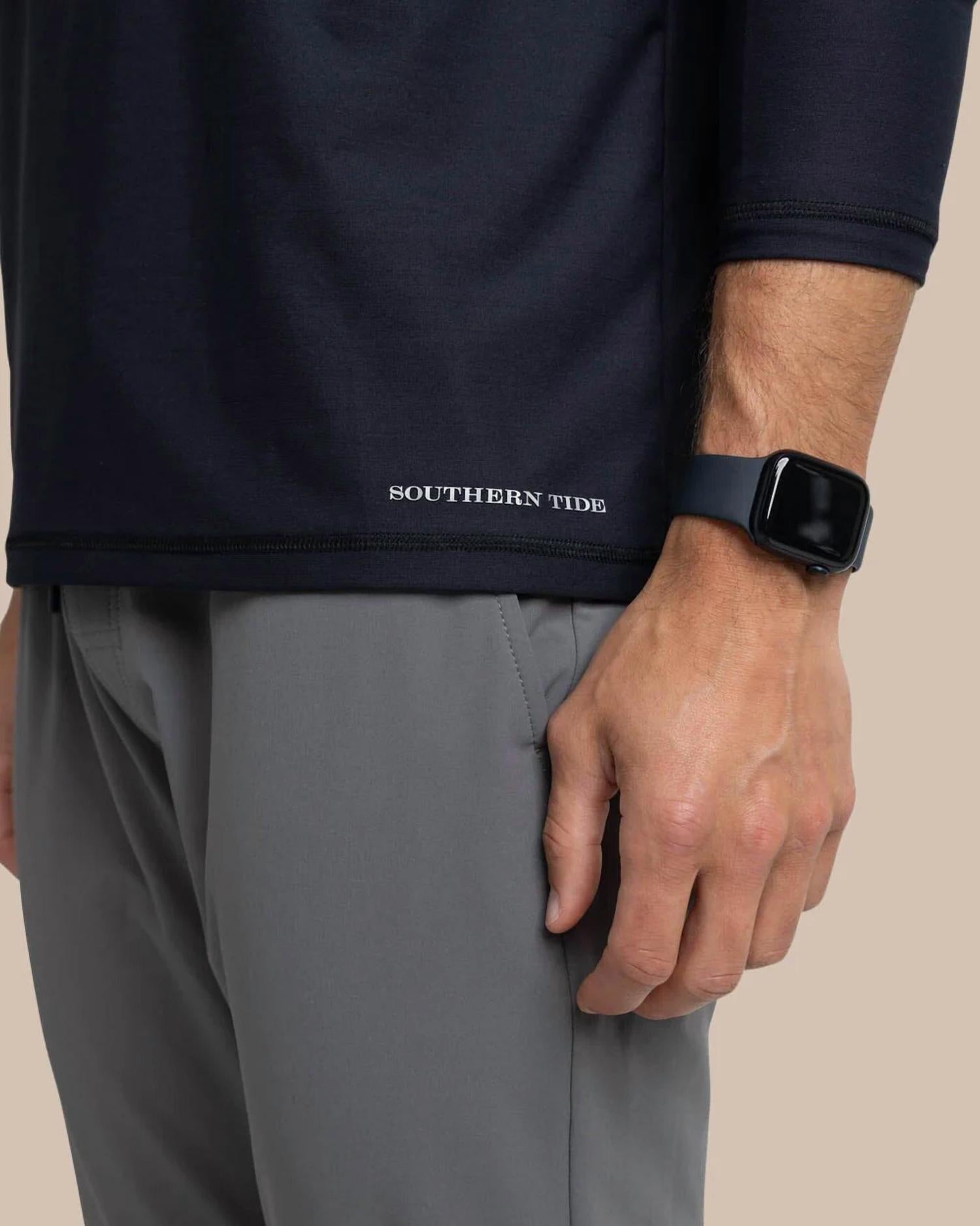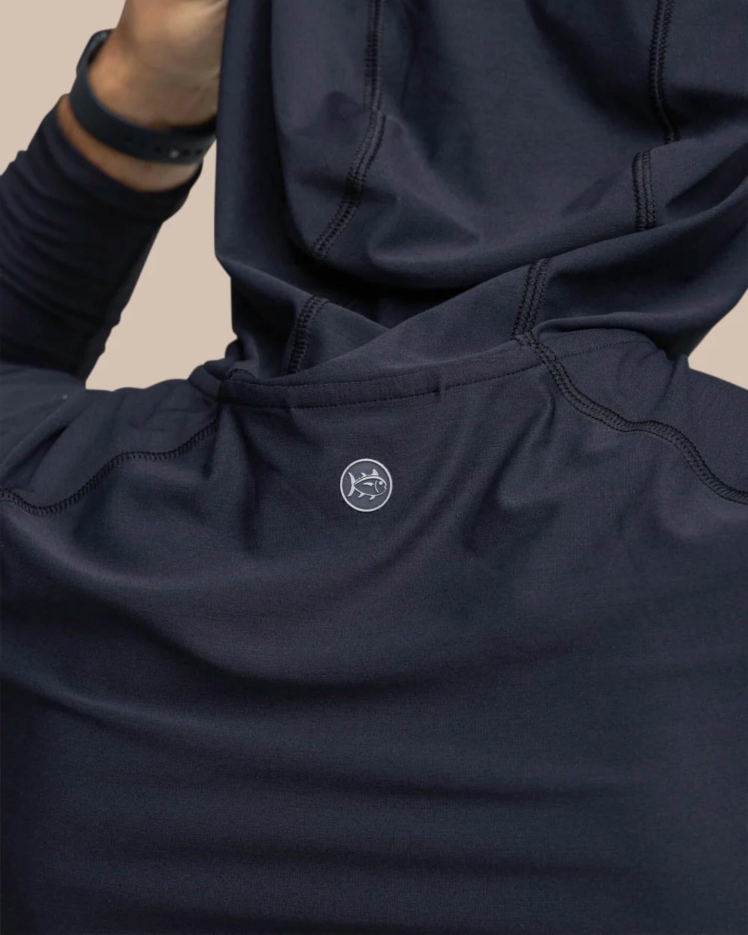 Elevate your activewear wardrobe with the Southern Tide Brilliant Performance Hoodie in Nautical Navy, perfect for both courts and docks. This men's performance hoodie features long sleeves and a pull-on closure, complemented by the moisture-wicking, quick-dry, and UV protection properties of the signature brrr°® Triple Chill Effect. The hoodie offers 4-way stretch and an overlap at the front neckline for optimal comfort, while an Active Skipjack reflective coin at the center back neck adds a stylish touch. Care: Hand wash and lay flat to dry. Model is 6'1" wearing a medium.