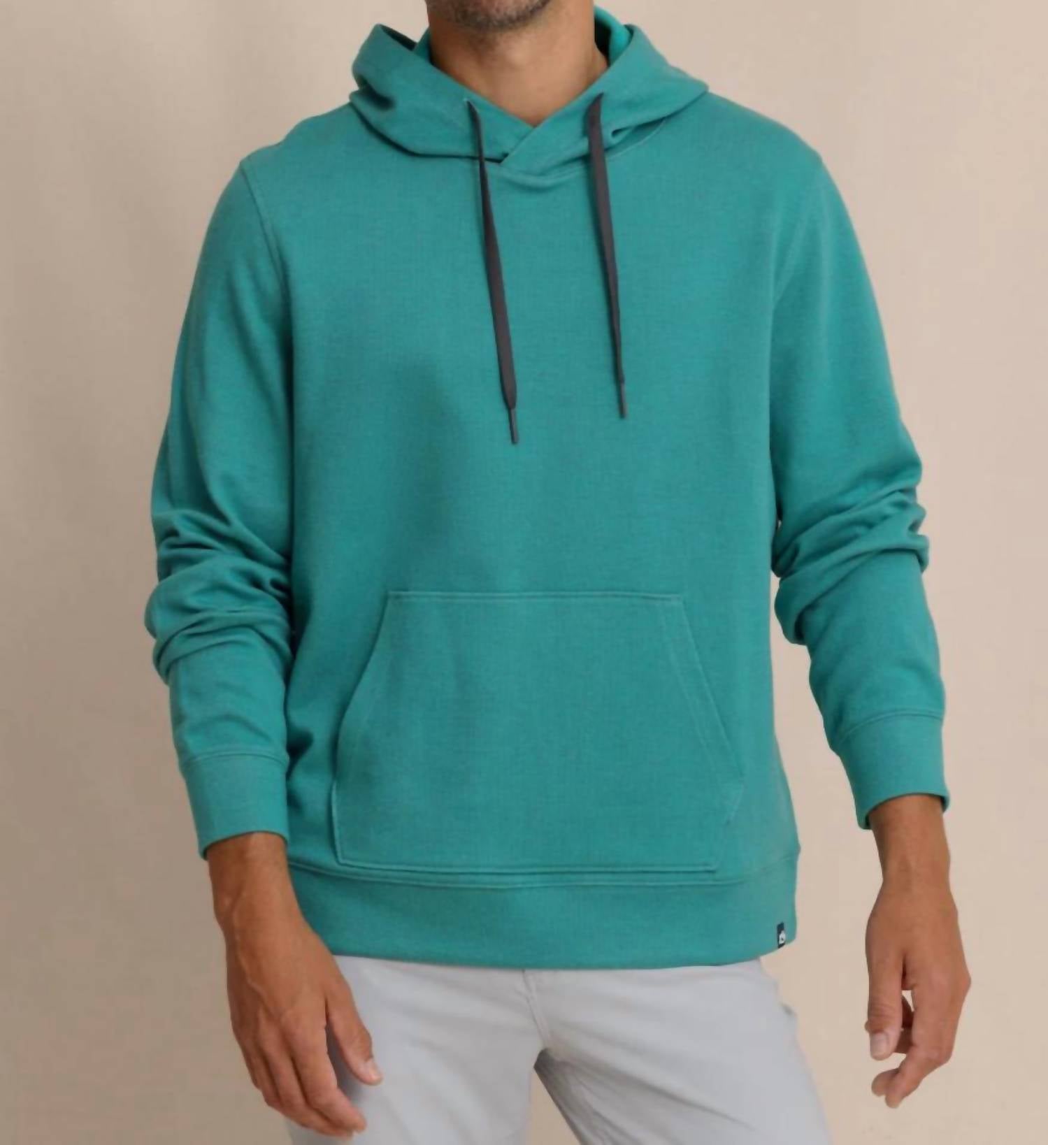 Embrace laid-back comfort with a refined edge in the Pearl Cove Fleece Hoodie by Southern Tide. This men’s hoodie in Spruce Shade features long sleeves and a hooded neckline, offering a solid pattern for a minimalist trend. Crafted from a cotton blend of 95% cotton and 5% polyester, this knit hoodie provides warmth without the weight, perfect for spring travel or casual occasions like Thanksgiving. Closure: Pull-on. Care: Hand wash and lay flat to dry. Model is 6'1" wearing a size Medium.