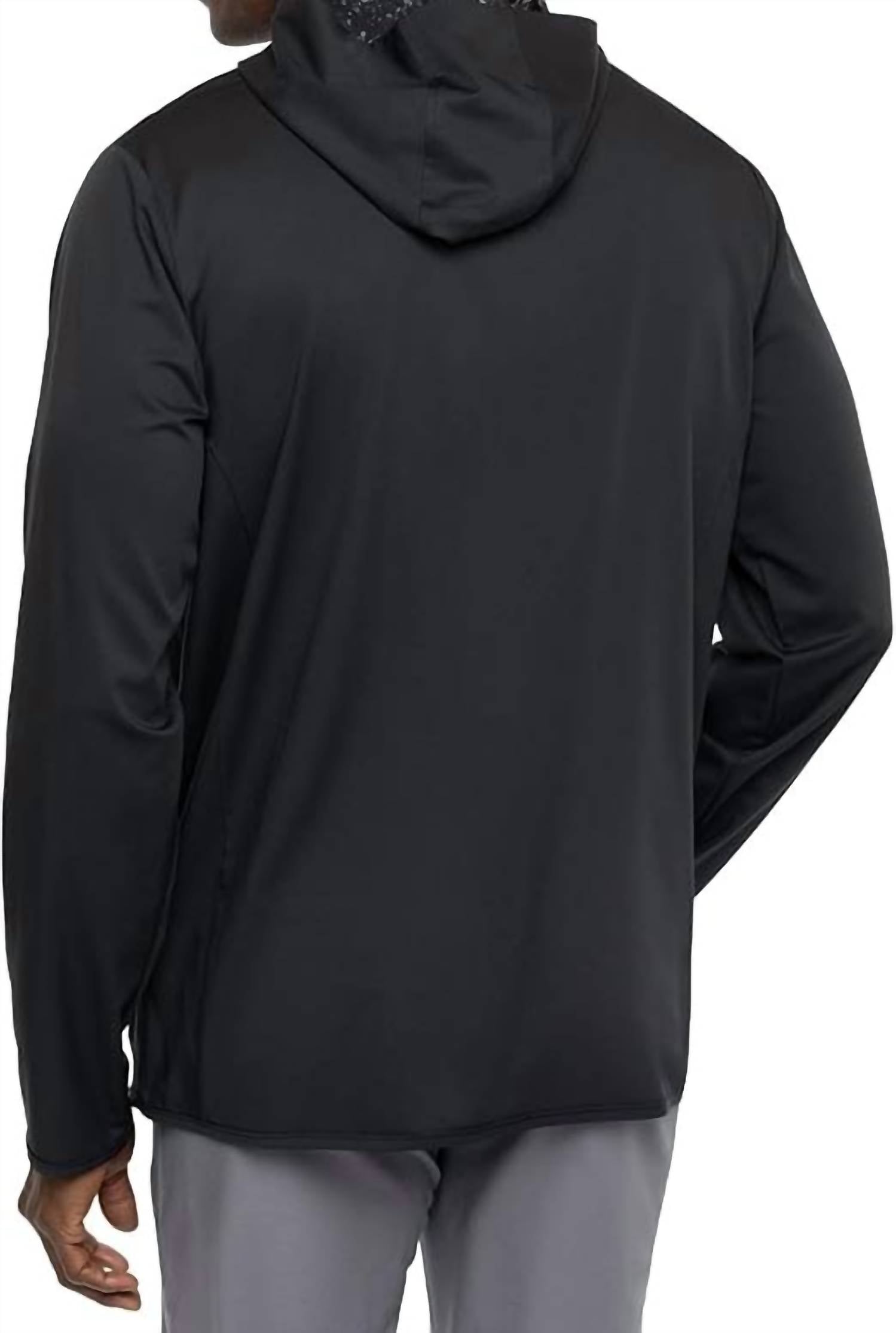 Embrace modern style with the Splatter Tech Hoody by TravisMathew, perfect for those on-the-go moments. Crafted from 88% Polyester 12% Elastane, this black graphic hoodie is designed with long sleeves and a convenient pull-on closure for easy wear. Ideal for travel and sporting a preppy trend, it features a hooded neckline and handy pockets for added functionality. Care for it with a gentle hand wash.