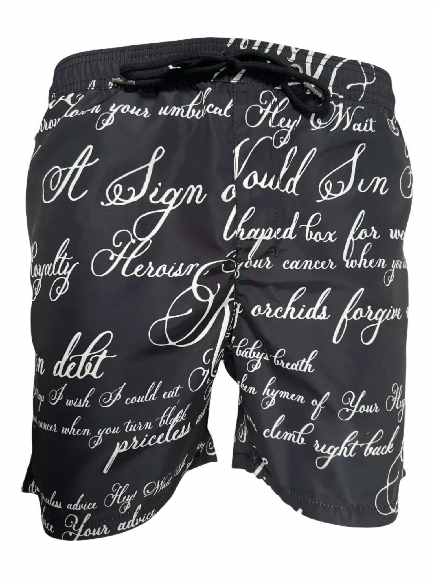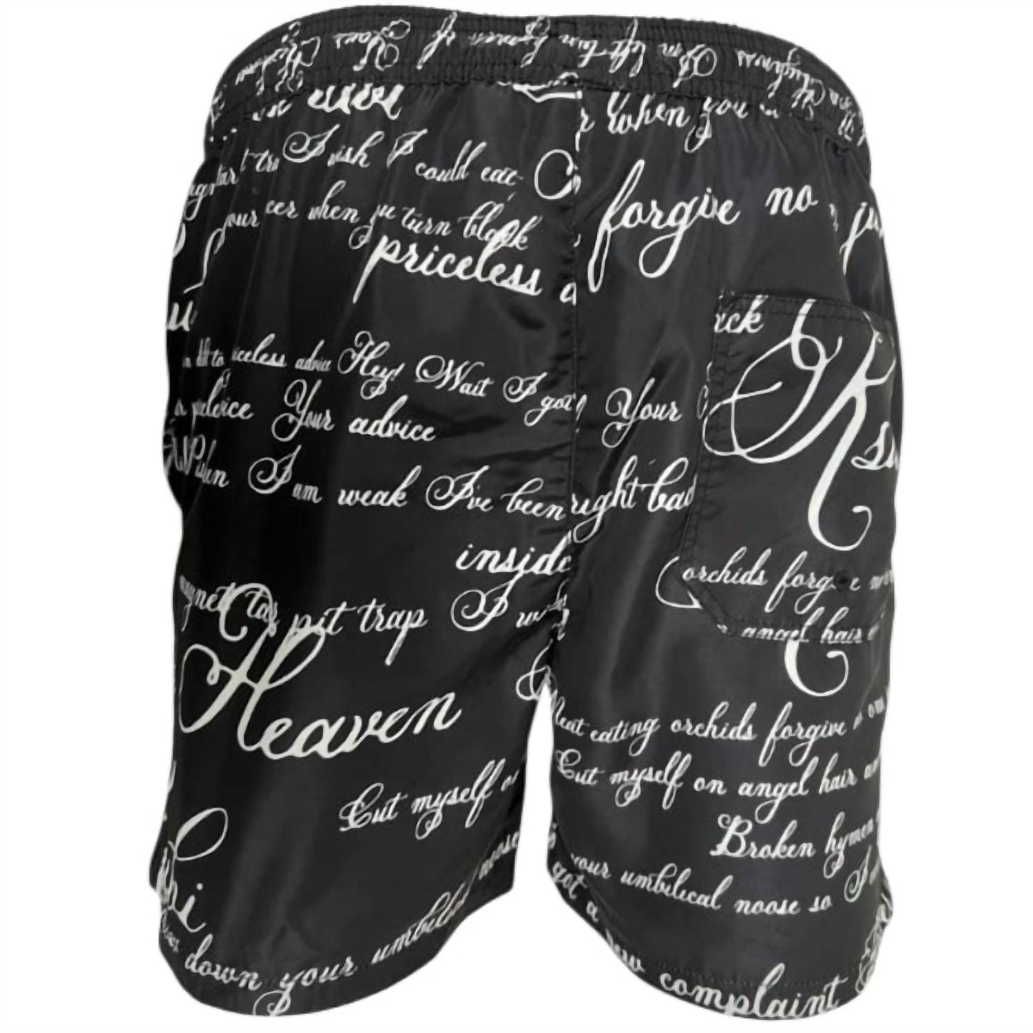 Introducing the Men's Kursed Boardshort by Ksubi, a bold choice for summer beach days. Crafted from 100% Polyester, these board shorts in classic black feature a striking white scripture print. Sourced from expert craftsmanship, their streetwear trend makes them perfect for the fashion-forward individual. For easy care, machine wash and lay flat to dry.