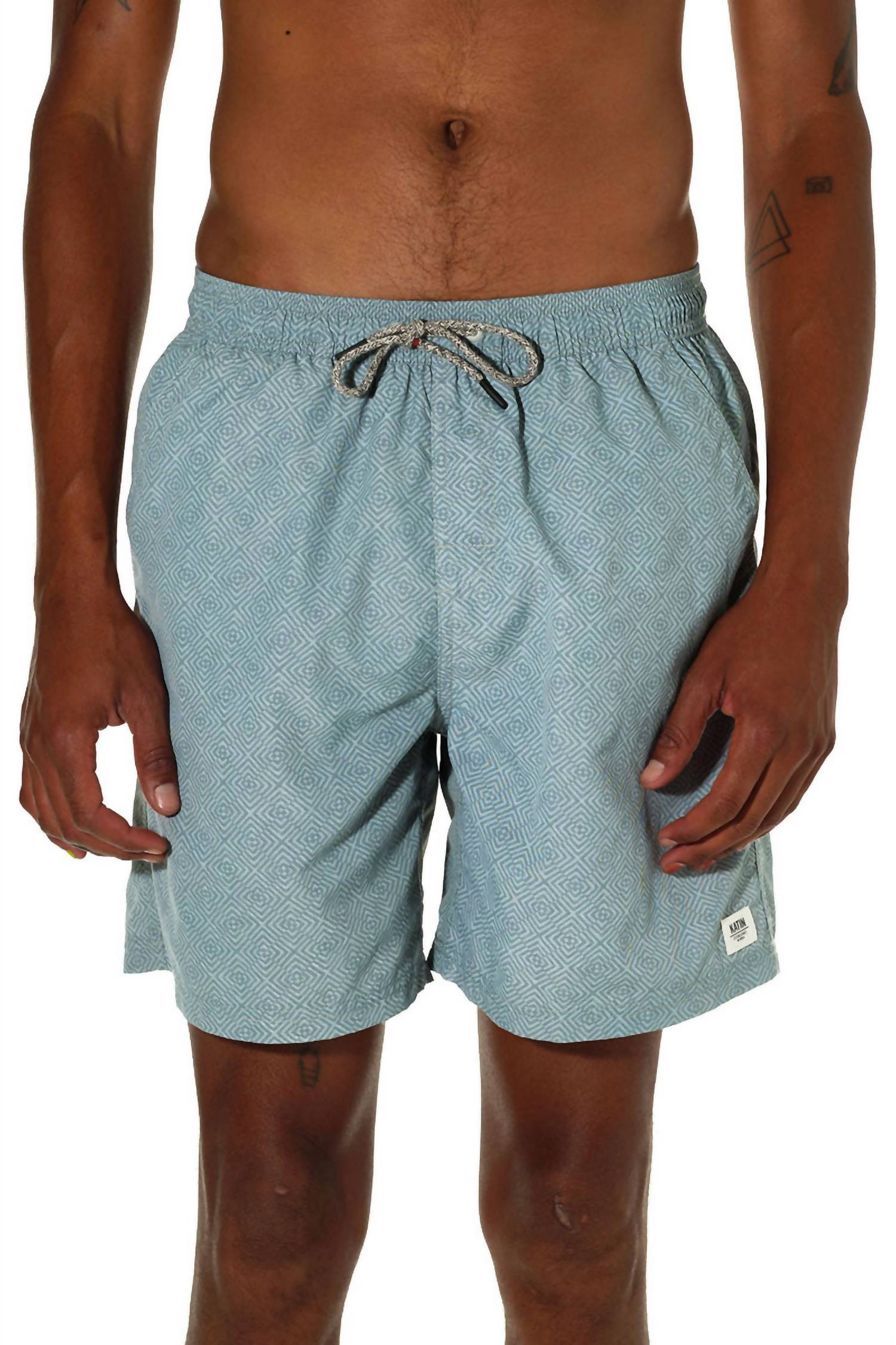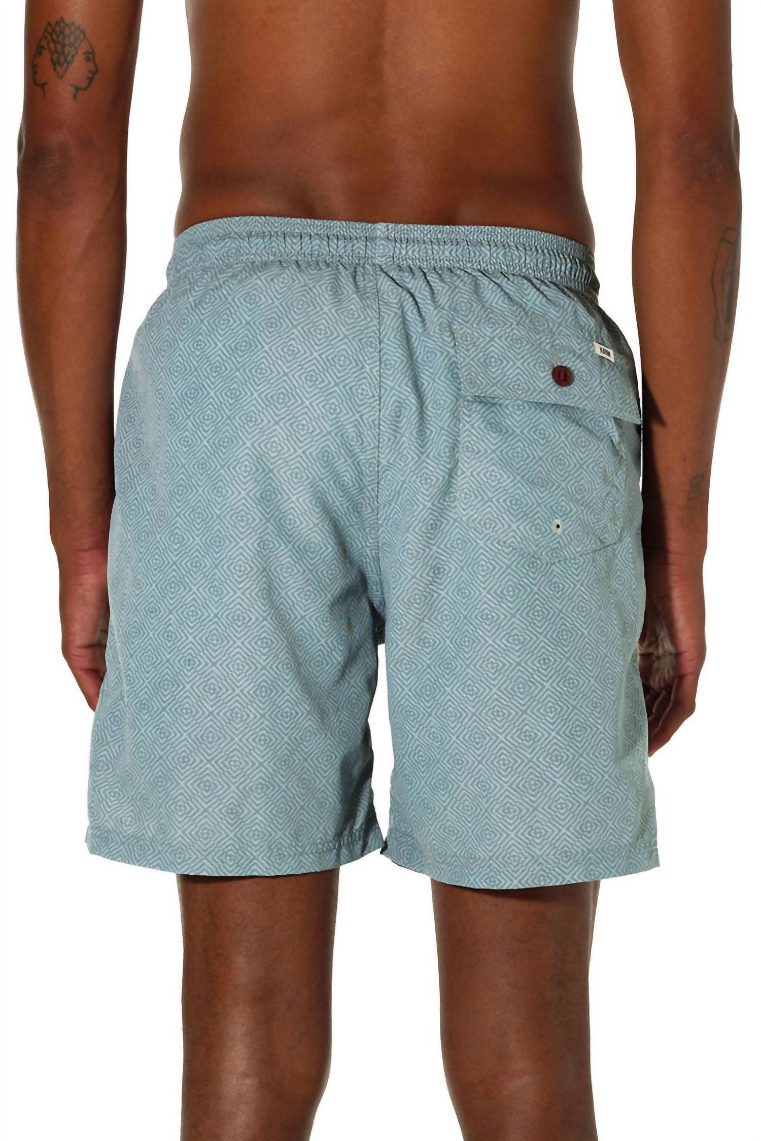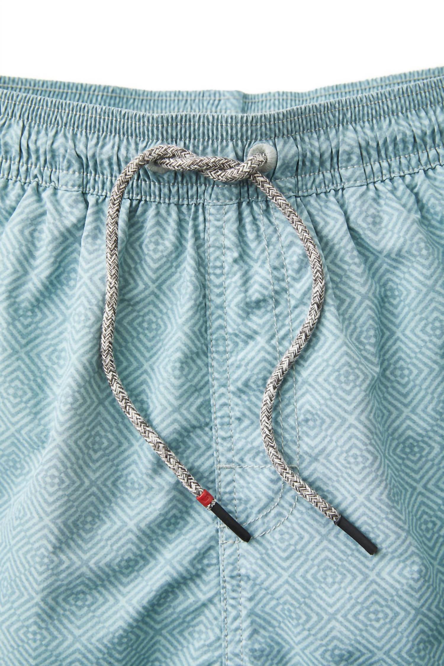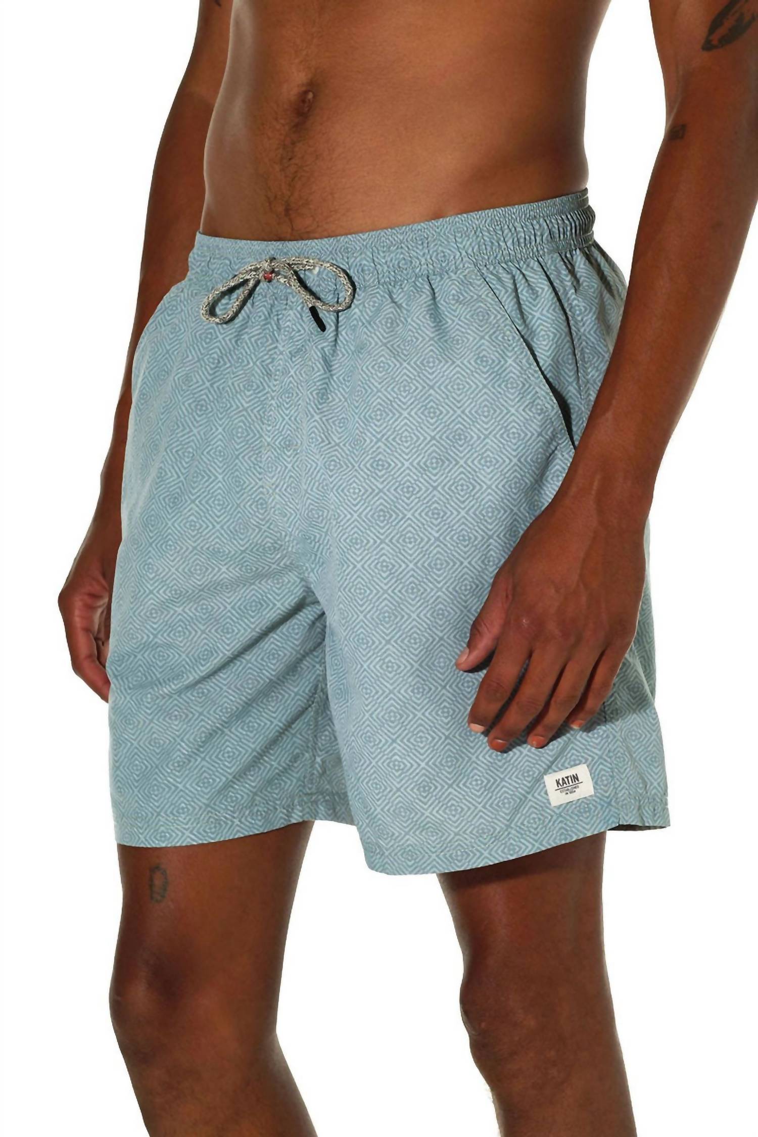 Introducing the Katin Reverb Volley Trunk Short in Blue Surf, a must-have swim trunk for men seeking comfort and style. Crafted from 100% 4-Ply Nylon Taslan, these patterned shorts feature a 17" outseam with an elastic cinch 1.5" waistband for optimal fit and support. Designed with practicality in mind, they include front pockets with mesh drain inserts, a back pocket, mesh lining, and an inner stash pocket for convenience. Adjustment is easy with a boat rope cinch drawstring, making these swim trunks an ideal choice for the active traveler.