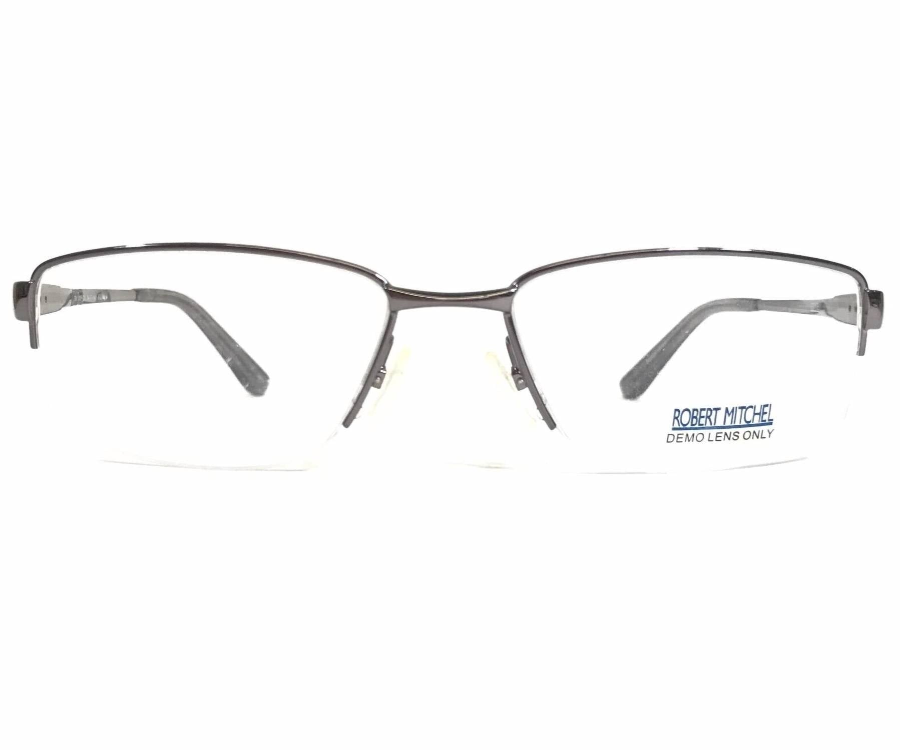Introducing the Men's RM1009 Rectangular Eyeglasses by Robert Mitchel, a sleek and sophisticated eyewear choice in elegant gunmetal. Crafted from durable metal, these eyeglasses ensure lasting quality and timeless style. With frame dimensions that provide a comfortable fit, they feature a bridge width of 17mm, lens width of 54mm, and temple length of 145mm. These rectangle-style frames are your ideal accessory for a sharp, polished look.