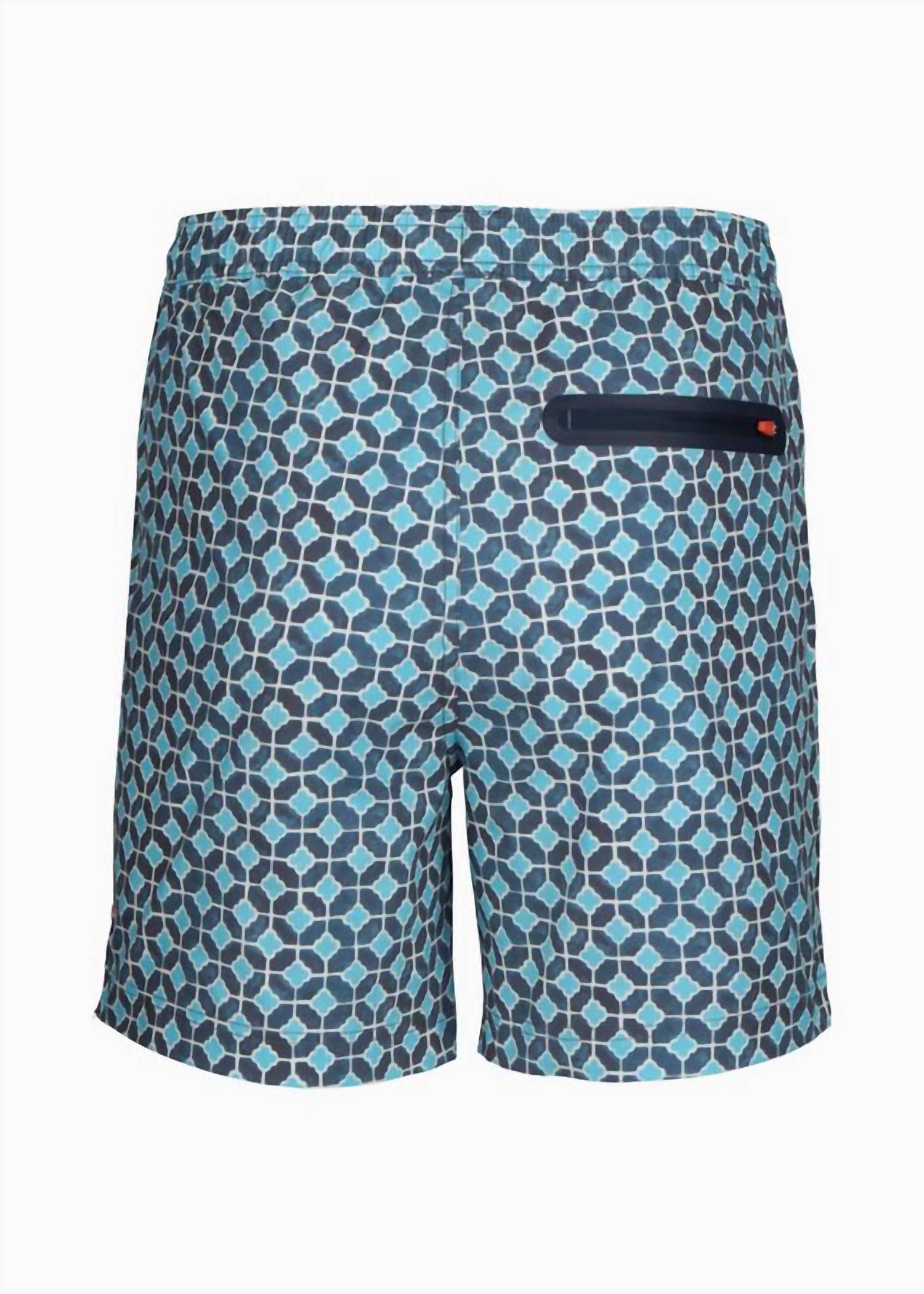 Discover the Men's Sol Swim Short by SWIMS, designed for ultimate comfort and style in dark denim. With a 6.5” length, these mid-rise board shorts are crafted from 100% Polyester featuring a lightweight, fast-drying 4-way stretch fabric. They offer a tailored fit with an adjustable waistband, a back seam sealed pocket, and a brief mesh lining for versatile wear in and out of the water. Perfect for beach days, this swim bottom provides full coverage and comes patterned to enhance your summer wardrobe.