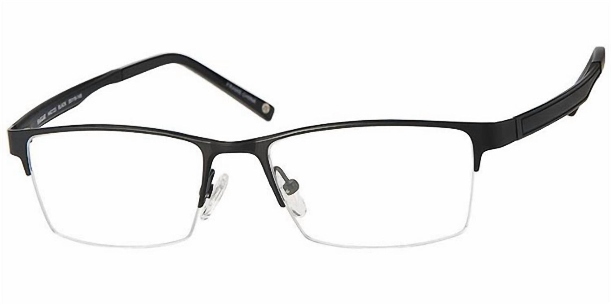 Presenting the Men's Hac123 Rectangle Eyeglasses by Haggar, refined with a sleek black finish. Expertly crafted from durable stainless steel, these frames ensure a comfortable fit with dimensions including a bridge width of 18mm, lens width of 55mm, and a temple length of 148mm. With a stylish rectangle design, they offer both practicality and elegance for everyday wear.