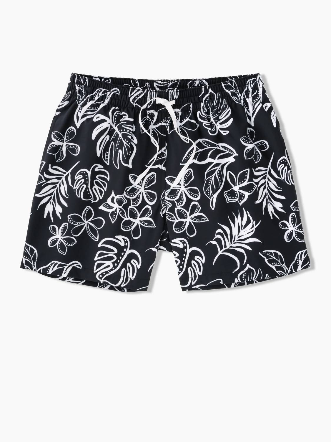 Introducing the Briefly In Paradise 5.5" Classic Swim Trunks by Chubbies, expertly designed for both style and function in a striking Black Floral pattern. These trunks feature an elastic waistband with a built-in drawstring, mesh side pockets, and a secure zipper back pocket, ensuring all your essentials are within reach. Crafted from polyester, they boast a quick-drying, 4-way stretch fabric with breathable mesh pockets for optimal comfort and mobility. Enjoy superior sun protection with UPF 50+ while the built-in mesh brief liner provides ultra-supportive fit. Care for these trunks is simple: machine wash cold and tumble dry low.