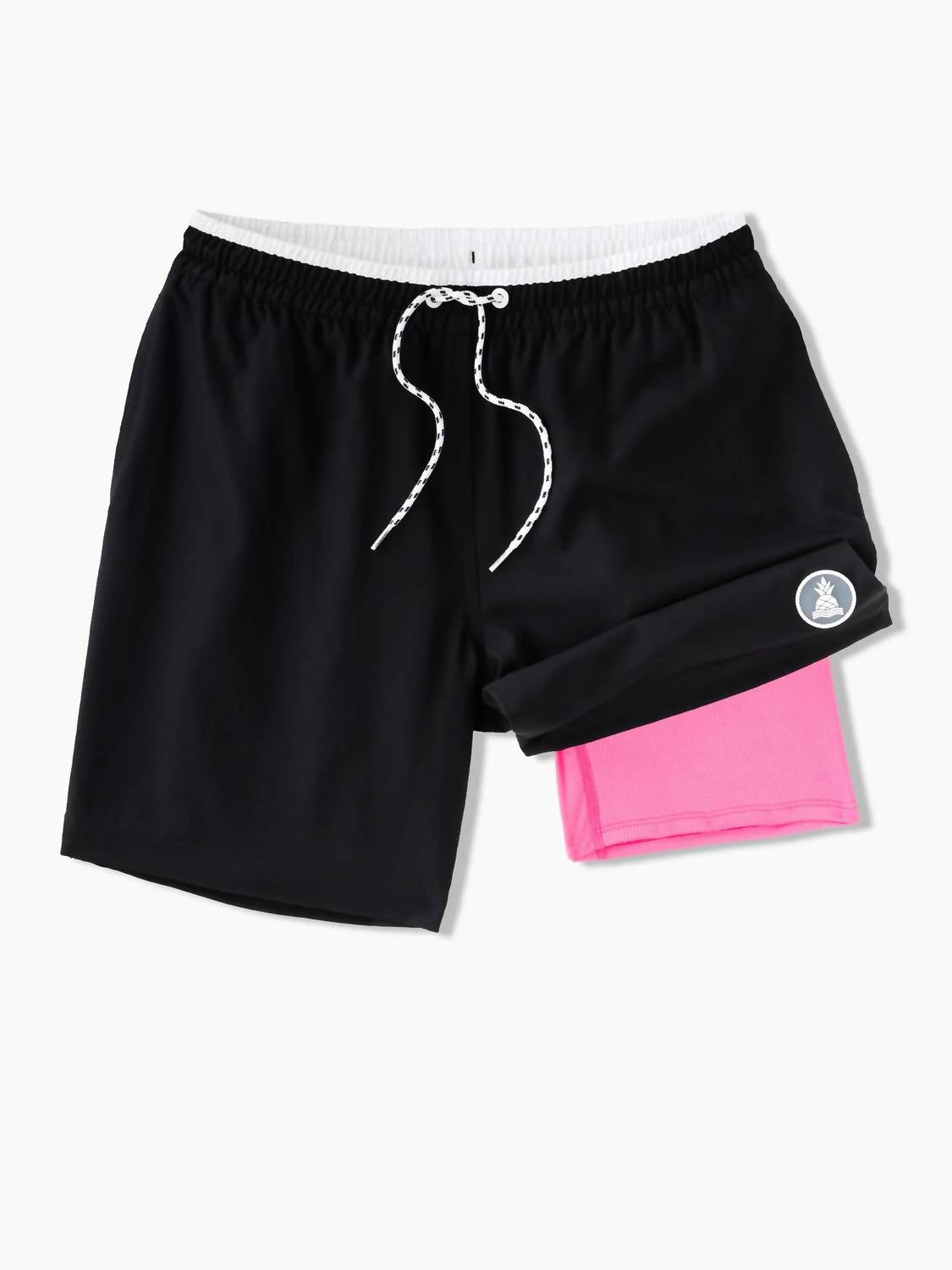 Introducing the Chubbies Capes Short, your go-to swim trunks for the ultimate beach day experience in sleek black. These solid swim trunks feature a classic stretch design with a built-in chafe-free boxer brief liner, made of a comfortable polyester/spandex blend for both shell and liner. With quick-dry, moisture-wicking fabric and four-way stretch, these trunks offer breathability and all-day versatility, perfect for any summer adventure. Designed for men, these lined trunks provide full coverage and ensure you stay cool and comfortable while swimming, lounging, or exploring.