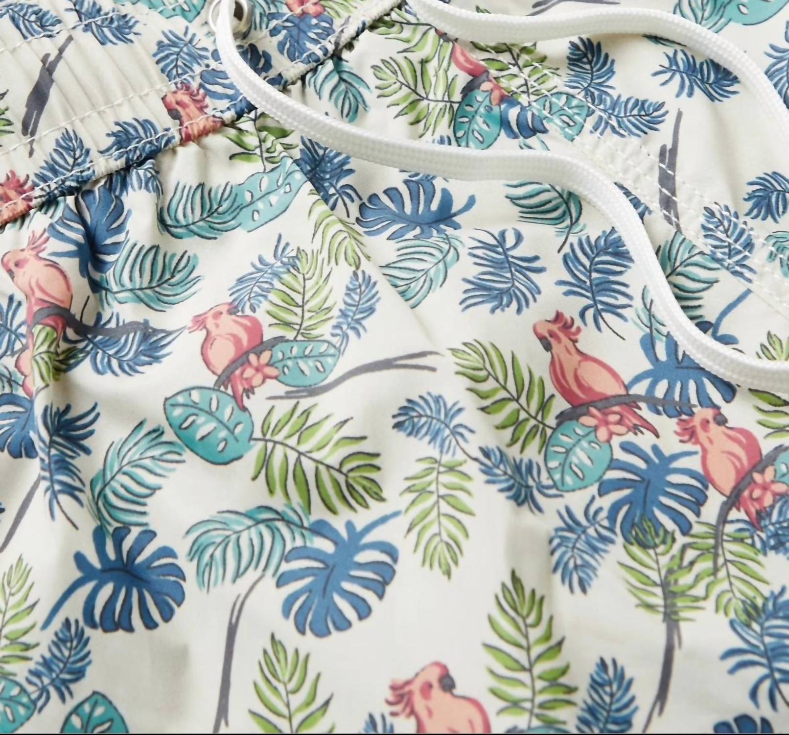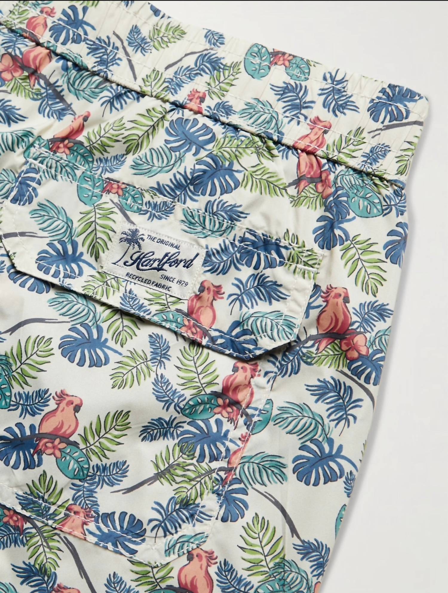 Introducing Hartford's Men's Parrot Print Swim Shorts, a stylish and practical choice for your next beach day. These mid-length shorts are crafted from quick-drying, 100% recycled nylon, ensuring comfort and sustainability. Featuring an elasticated drawstring waistband for an adjustable fit and a handy back locker loop for easy drying. Care instructions: Hand wash and line dry to maintain their vibrant white multi-pattern. Perfect for both sightseeing and swimming, these shorts embody the boho chic trend with effortless style.