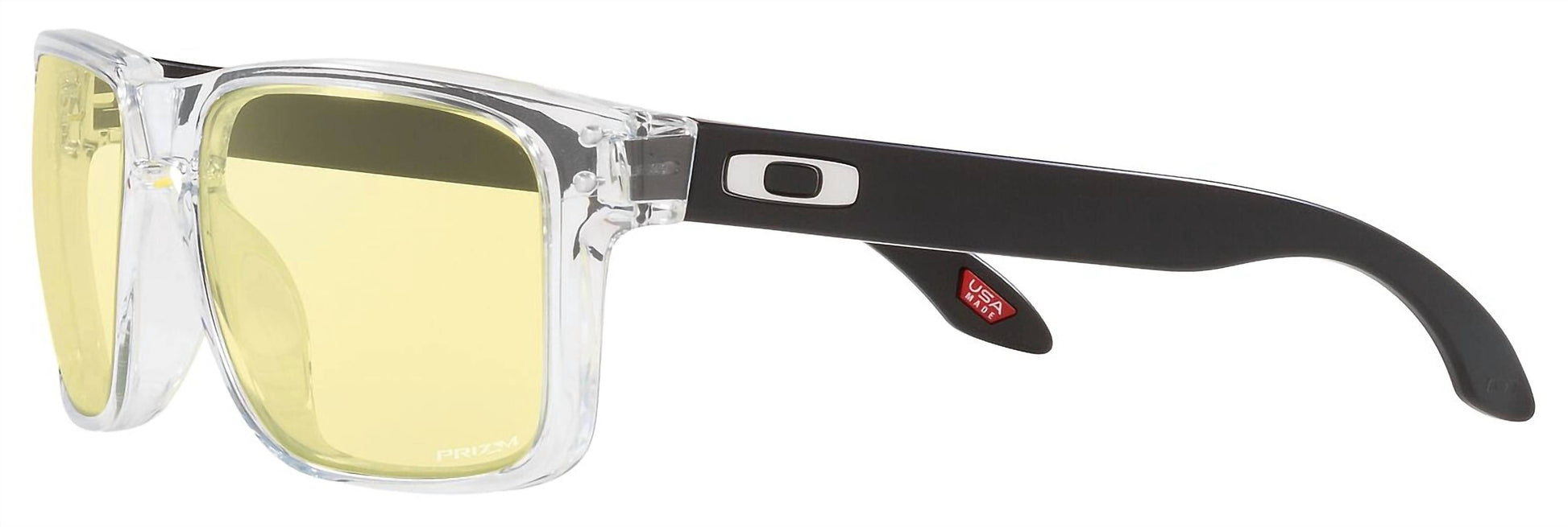 Experience the refined style and performance of Oakley's Men's Holbrook XS Sunglasses, designed for a snug fit on smaller faces. These sunglasses feature Prizm lens technology to enhance color, contrast, and detail, perfect for any activity. Constructed with a lightweight O Matter frame, they offer durability and all-day comfort. Embrace the sophisticated polished clear and black/prizm gaming color scheme with stylish metal rivets and a keyhole bridge for a classic look.