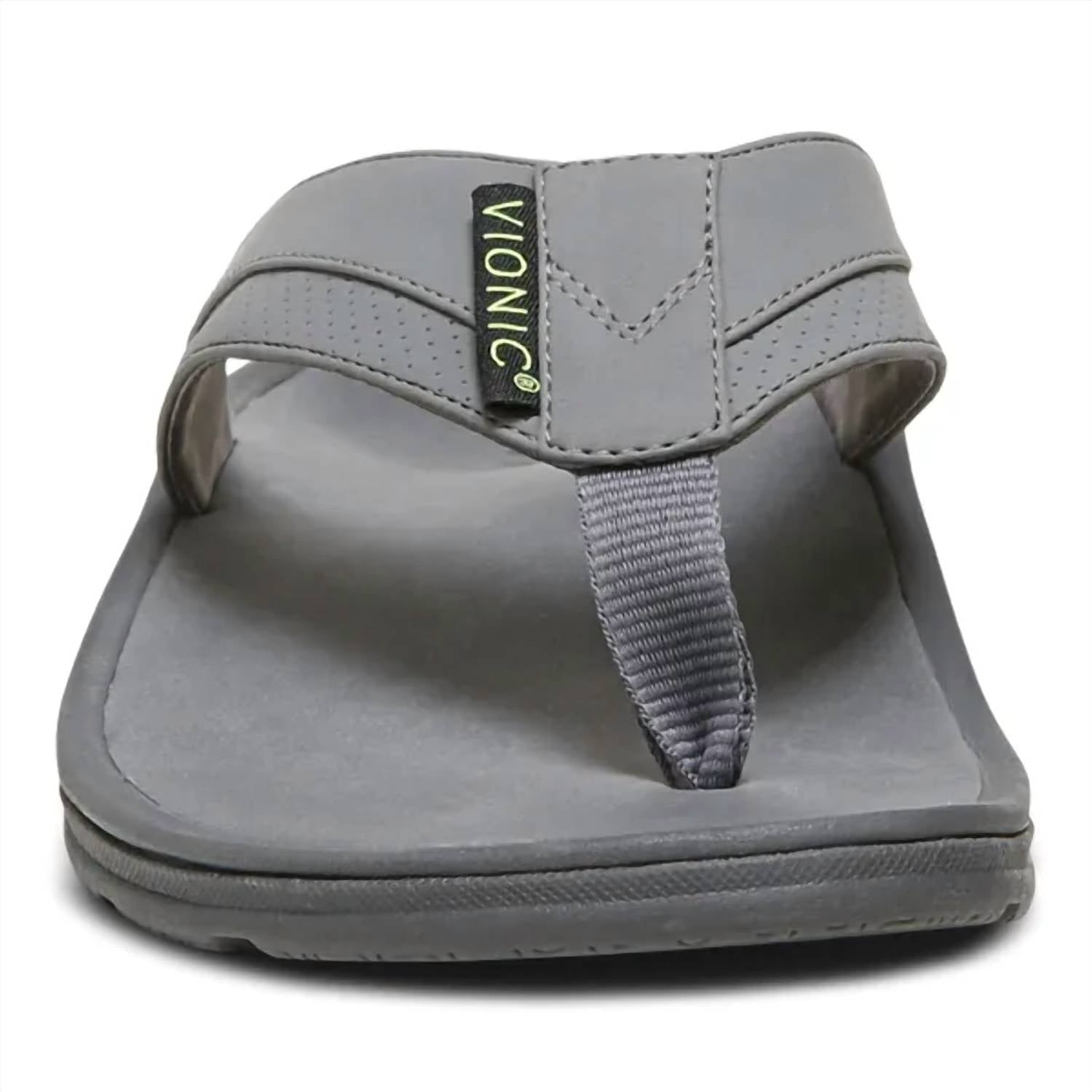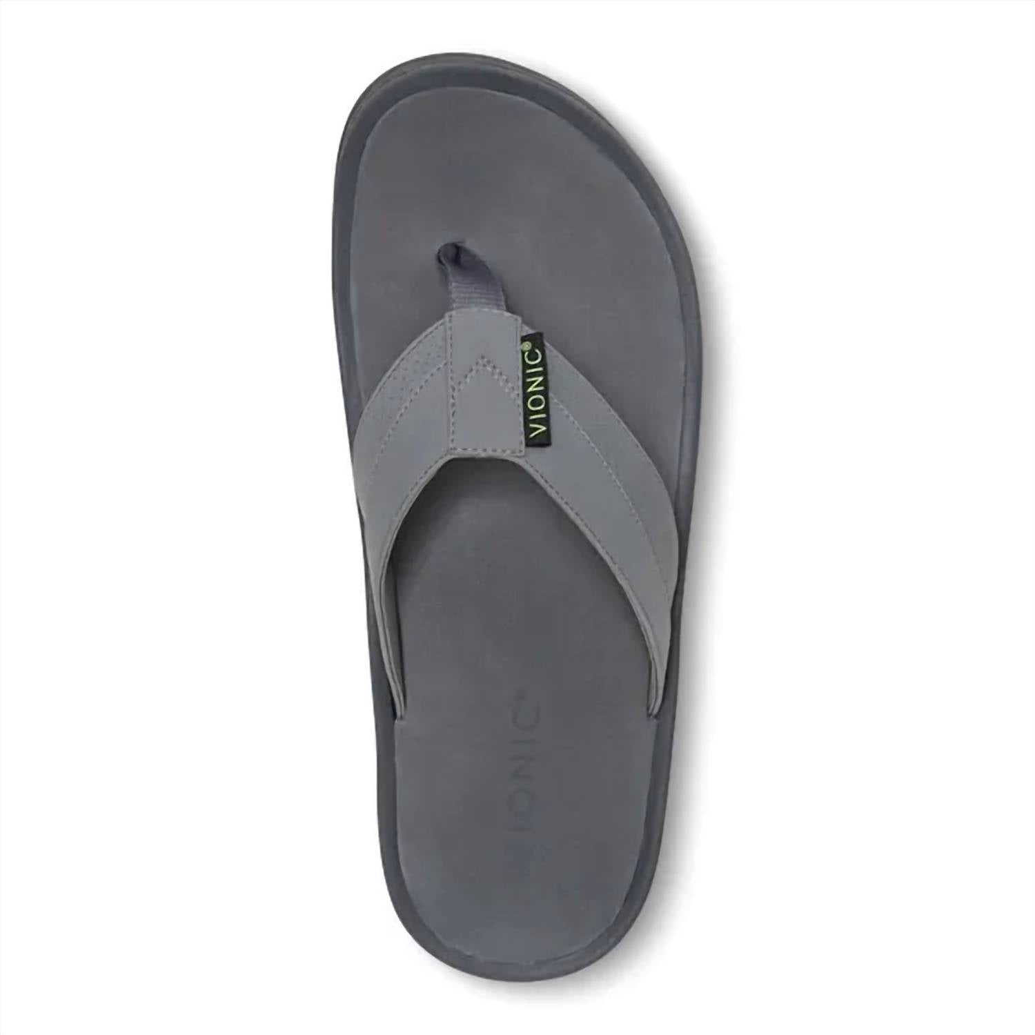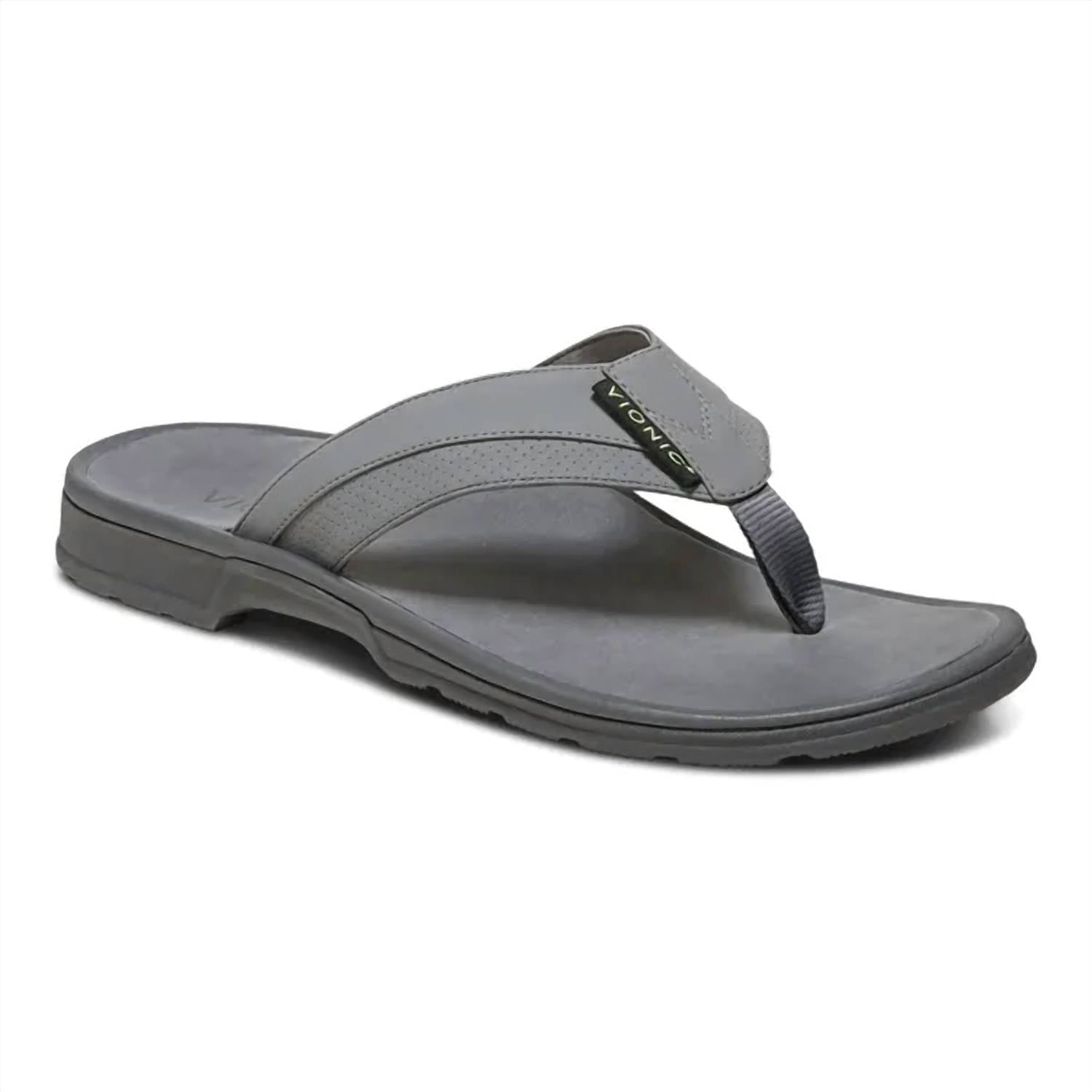 Elevate your summer workout ensemble with the Men's Wyatt Thong Sport Sandal by VIONIC, designed for style and comfort in a sleek grey tone. These sandals feature a synthetic upper and a flat heel, ensuring optimal support and stability during fitness activities. The innovative outsole construction with a cutout arch provides every-step comfort, making them a perfect fit for the athleisure trend. Ideal for warm weather, these medium-width sandals with an open toe shape are a must-have for your athletic summer endeavors.