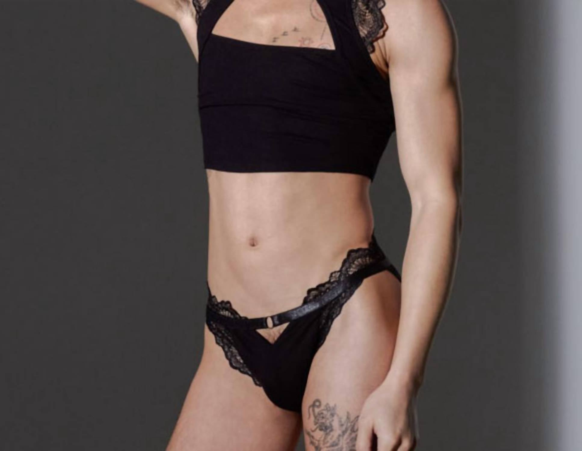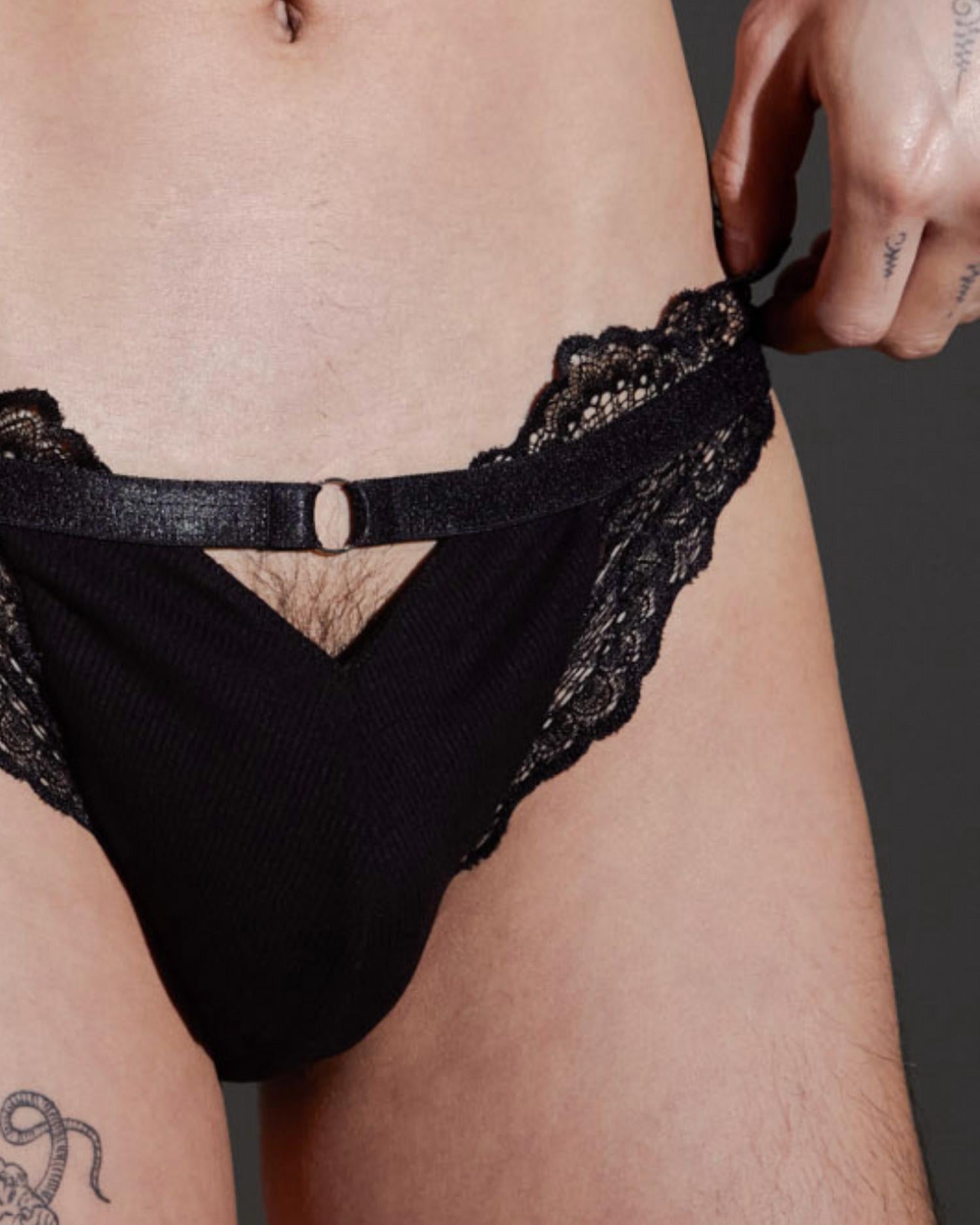 Elevate your lingerie collection with the Kane Jockstrap Underwear by Thistle and Spire, designed in sophisticated black. This rib-knit piece features a front keyhole detail, complemented by classic Kane lace accents and an overt back, providing medium coverage. Crafted from 85% Polyester, 15% Elastane, it offers a mid-rise fit, ideal for summer vacations and exemplifies the trend of quiet luxury. Care instructions include hand wash and line dry, ensuring this unique piece stays in perfect condition.
