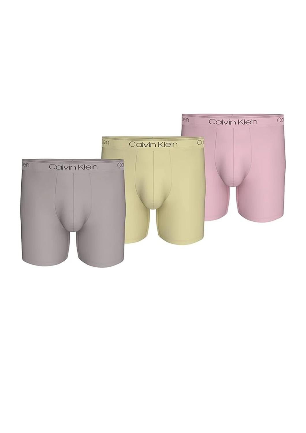 Elevate your essentials with the Men's 3-pack Micro Stretch Boxer Briefs by CALVIN KLEIN, designed in a chic mix of Grey, Yellow, and Buff Pink. These boxer briefs boast a modern and body-defining fit, crafted from ultra-smooth polyester with added elastane for stretch and maximum mobility. Featuring a secure seamed contour pouch to minimize movement and a stylish elastic waistband with contrasting logo, they ensure comfort and a sleek look under any attire. Ideal for men who appreciate style and functionality, this 3-pack is a must-have for daily wear.