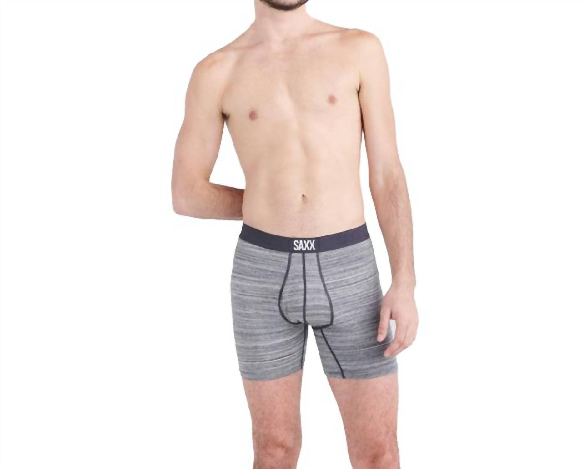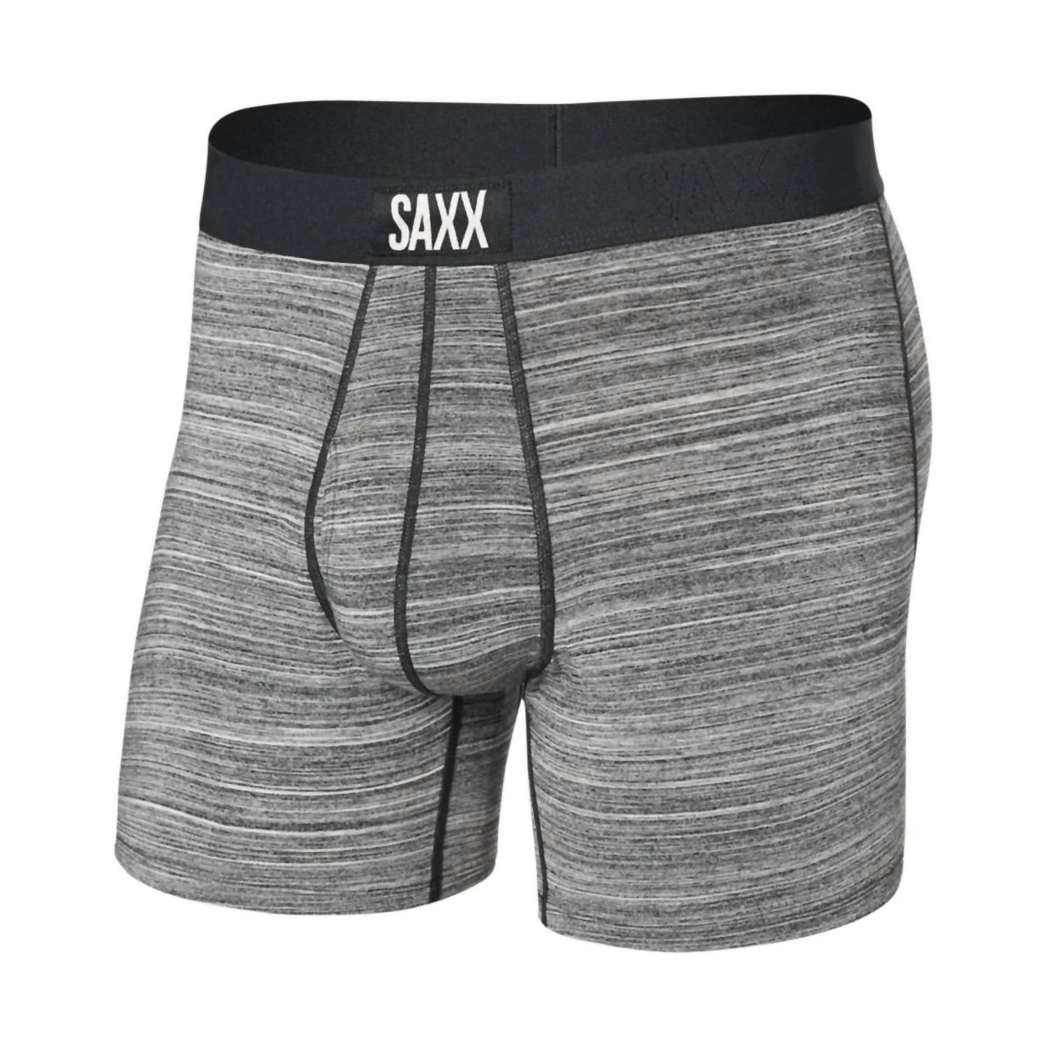 Experience ultimate comfort with the Ultra Boxer Brief by SAXX, a must-have for everyday wear. Crafted from a super-soft 95% Viscose and 5% Elastane blend, these boxer briefs feature a breathable composition, providing unrestricted movement with a 4-way stretch design. They boast a unique BallPark Pouch, ensuring secure support, and a fly opening for convenience. These boxer briefs come in a stylish Spacedye Heather Grey, are machine washable, and can be tumble dried on low. Designed with a high-rise waist and full coverage, they make an excellent gift choice for occasions like Valentine's Day.