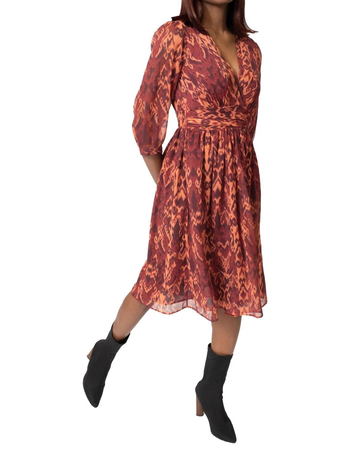 Just add slides or mules and you are good to go. Elevate your spring wardrobe with the Naomi Midi Dress by Area Stars, a boho-chic piece in vibrant red. This fit and flare dress features long sleeves and a flattering V-neckline, perfect for a holiday party or Easter celebration. Crafted entirely from 100% polyester, this patterned dress offers a comfortable pull-on closure for easy wear. Care instructions: Hand wash and line dry.