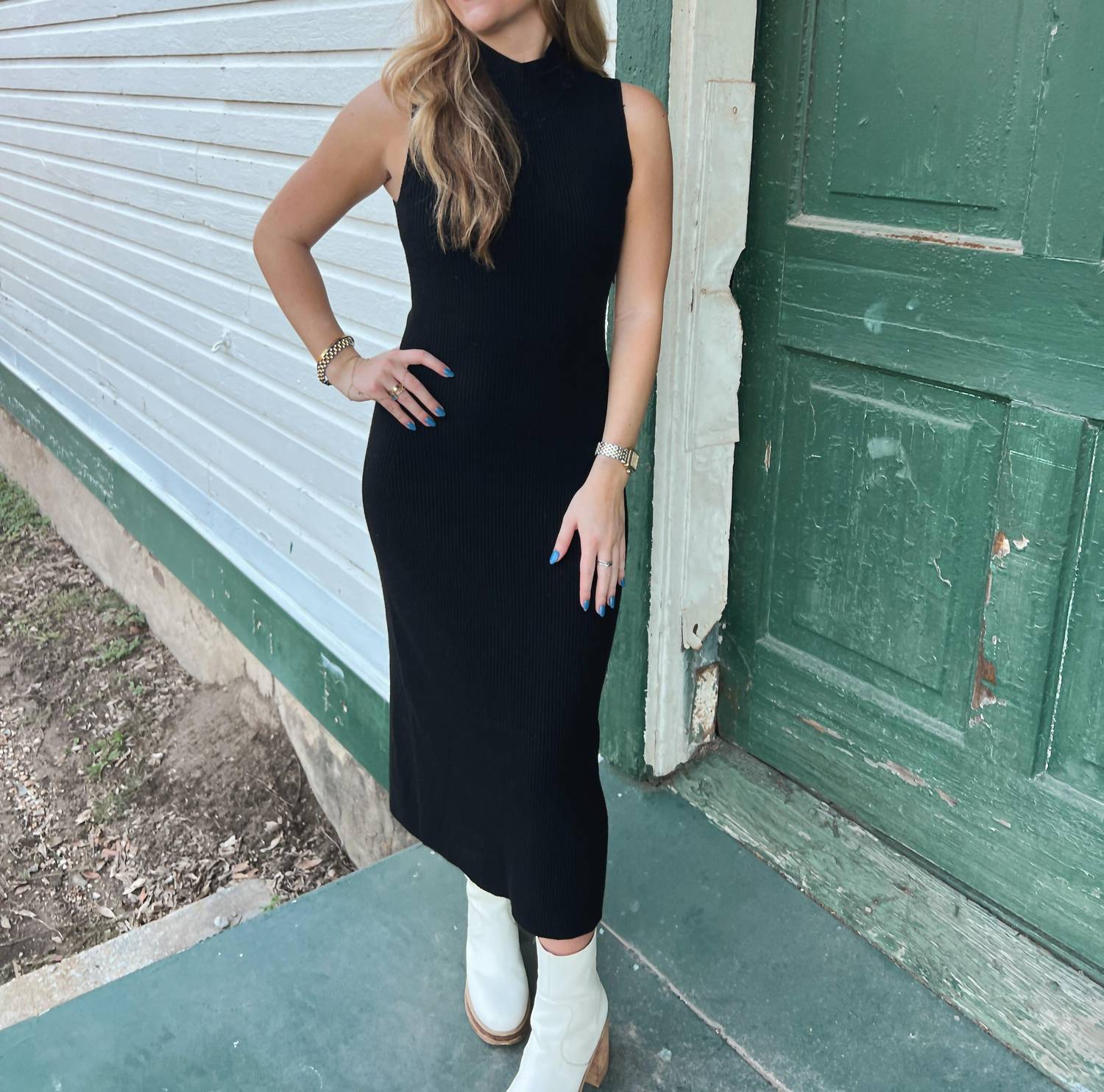 Just add slides or mules and you are good to go. Discover timeless elegance with the Gabby Ribbed Sweater Midi Dress by Design History, perfect for your next occasion. This sleeveless bodycon dress boasts a luxurious composition of 4% Cashmere, 20% Merino, 20% Cotton, 33% Viscose, and 23% Nylon, ensuring comfort and style. The pull-on closure and chic mockneck trim add a touch of sophistication, while the center back slit enhances movement and flair. Designed for the spring season, this black textured dress is best maintained with dry cleaning. Model is wearing a size x-small.