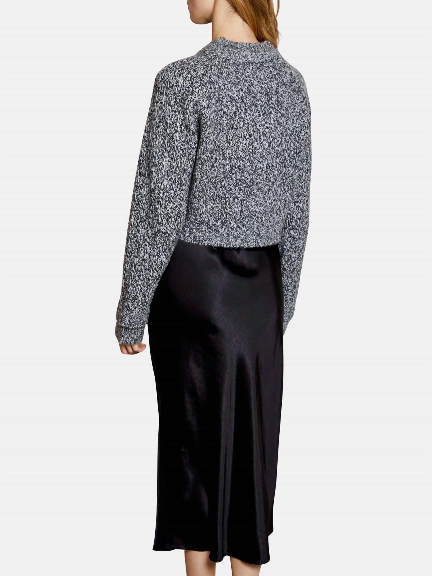 Just add slides or mules and you are good to go. The Roz Sweater Dress by dh NEW YORK combines minimalist elegance with a two-piece set, featuring a long sleeve crewneck sweater and a bias-cut slip dress. Crafted from a blend of 9% Cashmere, 49% Nylon, 27% Wool, and 15% Acrylic for the sweater, and 100% Polyester for the slip dress, this ensemble offers a refined look. Available in a solid Jet Marl, the dress includes adjustable straps and a left side hem slit for added style. Designed for ease in vacation settings, this midi-length A-line silhouette is to be dry cleaned only.