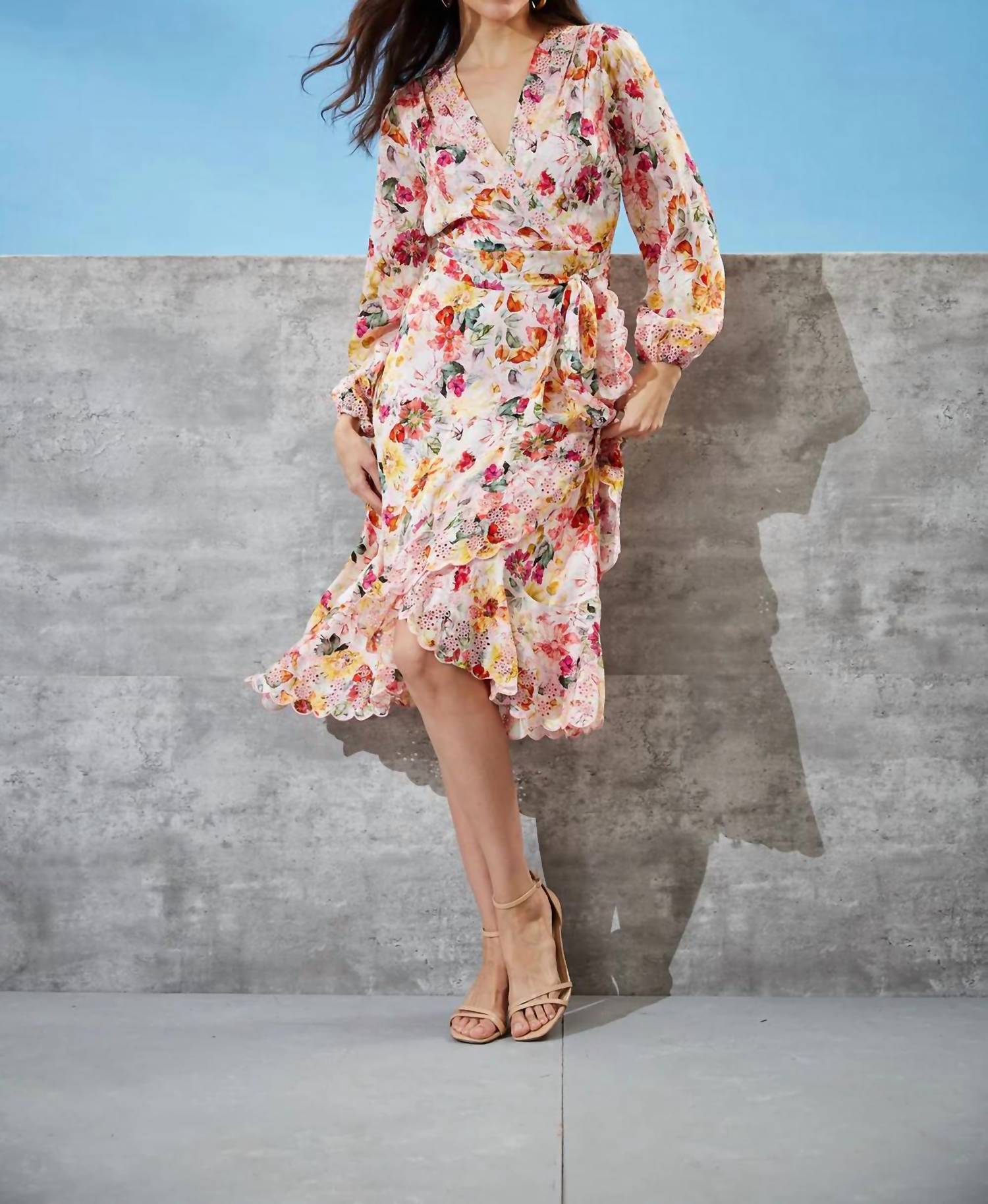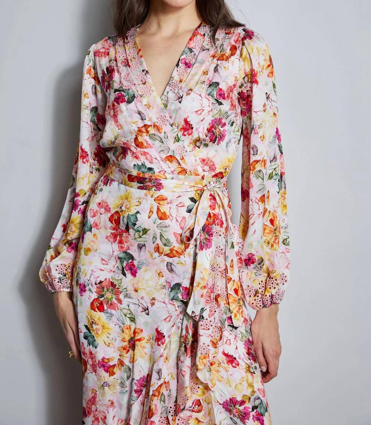 The perfect length dress does exist. Luxe Silk georgette is perfect for our ultra-chic wrap dress. The sophisticated print, embroidery & easy silhouette lend a modern vibe to this on-trend dress that will take you from day into dinner. Long Sleeve Floral Print Wrap Dress 52% Silk, 40% Viscose, 8% Spandex Runs true to size. Model is 5'9" and wearing size 2 Measurements: 46" L Shoulder to Hem (approx. measurement for size 6) Dry Clean Only Imported Style #: ETR41181